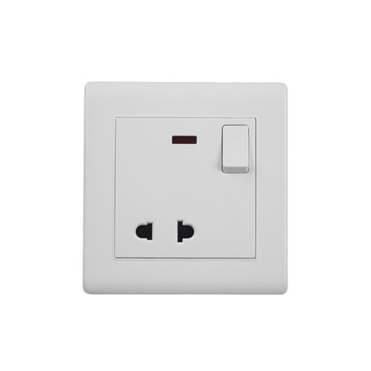 86型塑料喷漆大板白色一开二孔插座带指示灯开关
