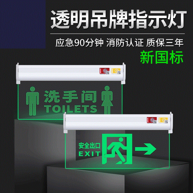 亚克力水晶吊牌式安全出口led钢化玻璃疏散指示灯悬挂式