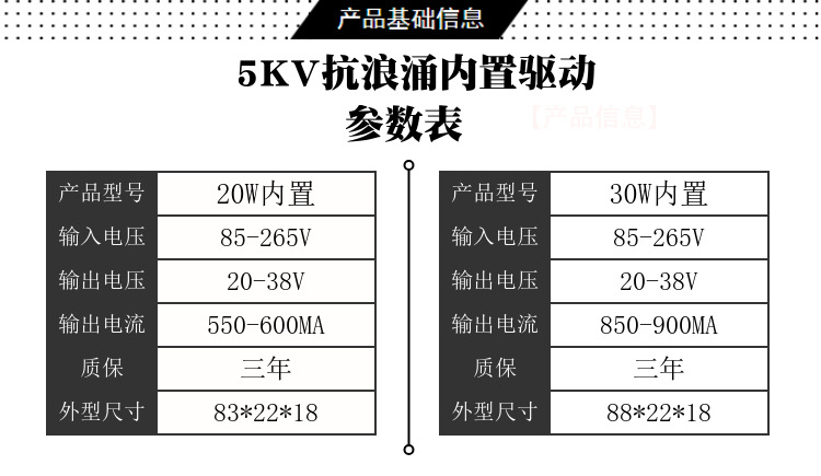 20-60W抗浪涌5KV隔离无频闪电源 高PF内置led电源 5KV大功率电源