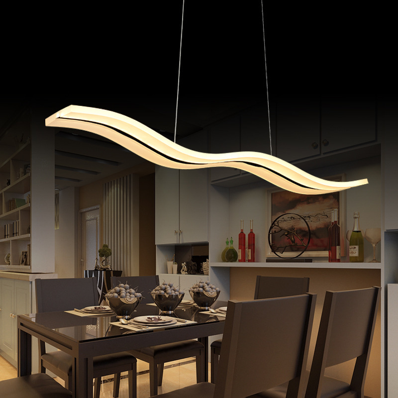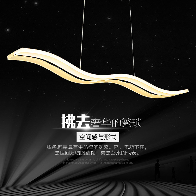 餐厅吊灯现代简约大气鱼线超薄波浪形餐桌吧台饭厅吊灯具