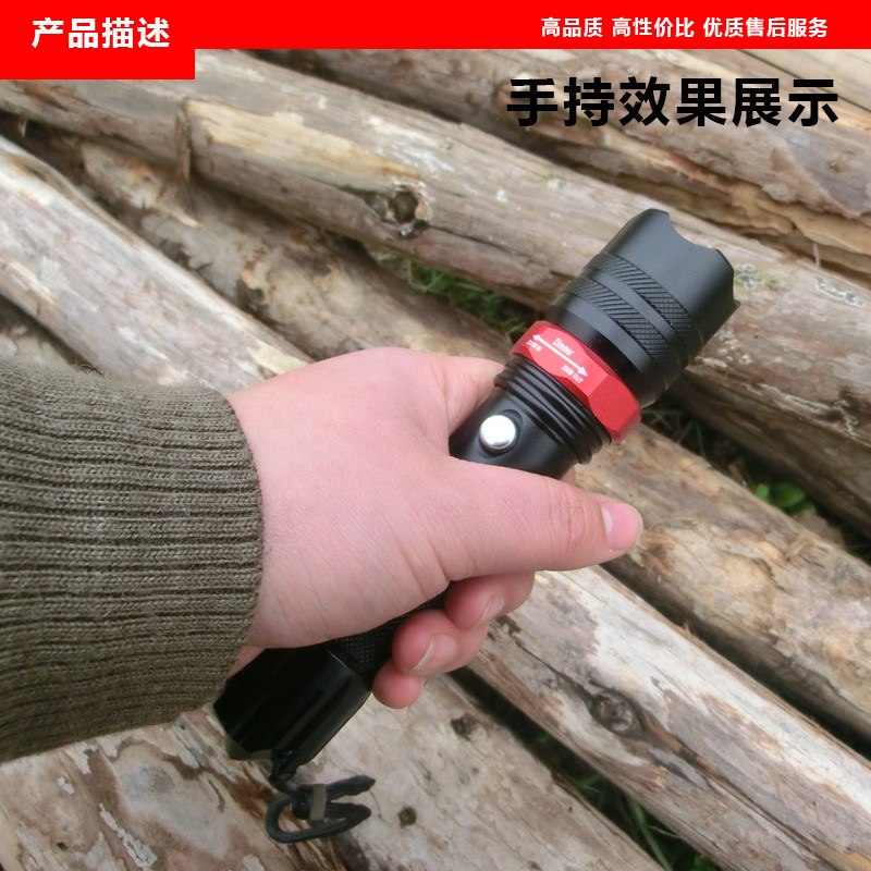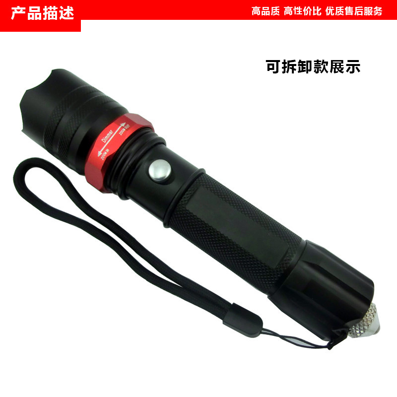 防身强光调焦手电筒带安全锤救生锤可拆卸骑行前灯