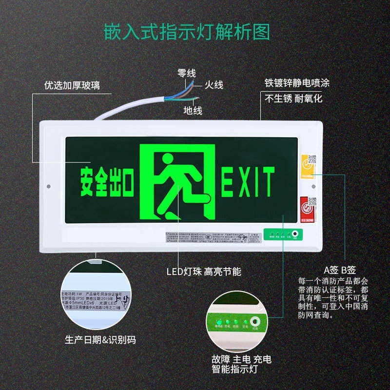 应急led暗装安全出口指示灯左向右向嵌入式疏散指示灯