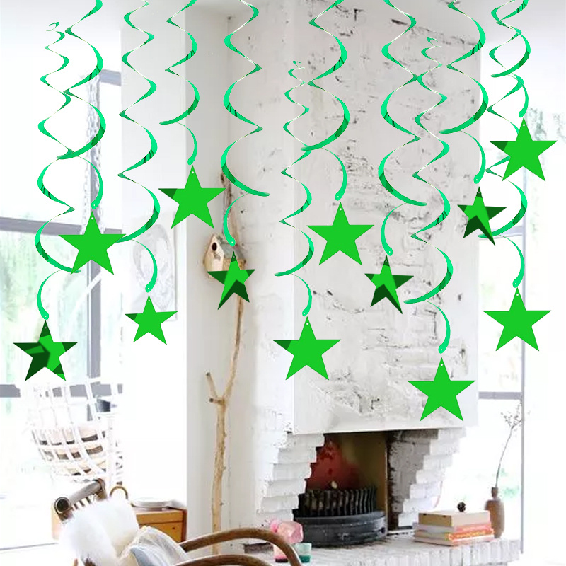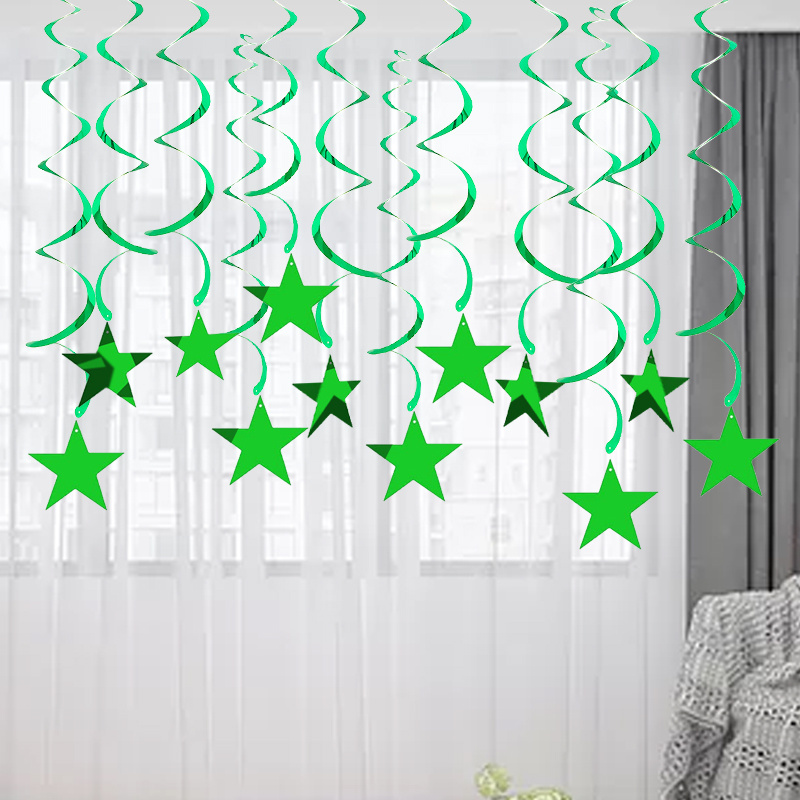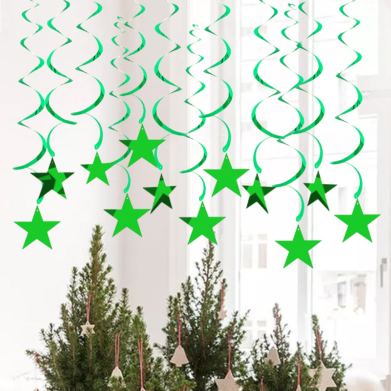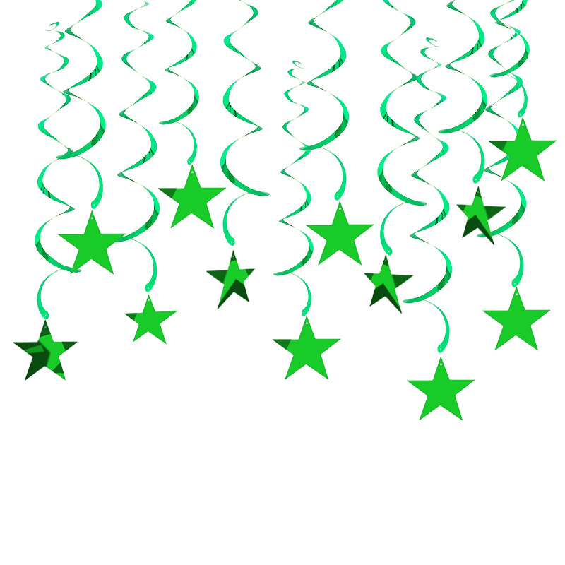 螺旋PVC亮片挂饰 吊饰场景居家布置 绿色五角星PVC拉花