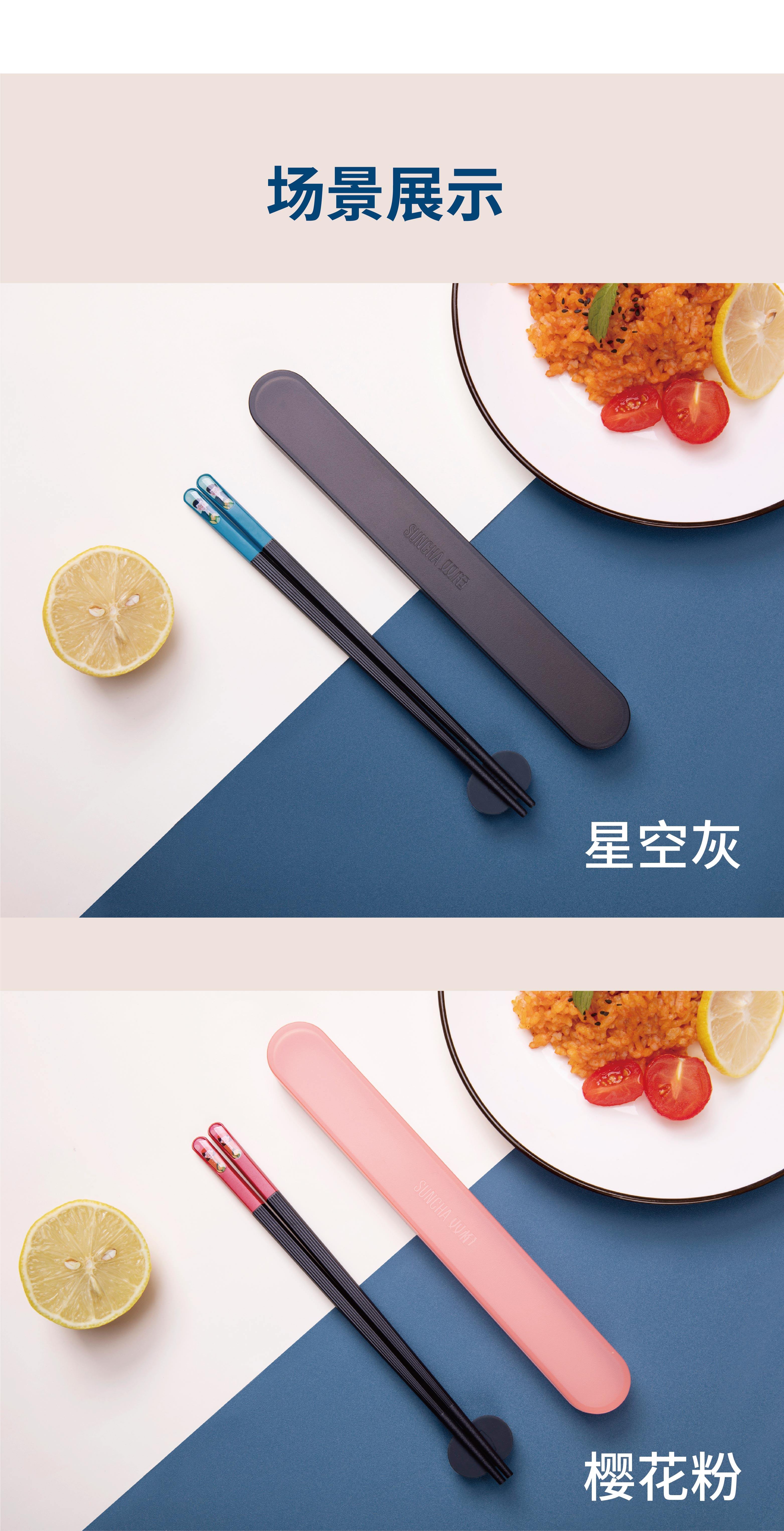 双枪筷子单人装合金筷子餐具日式上班学生外带收纳盒套装