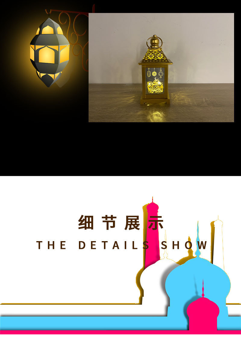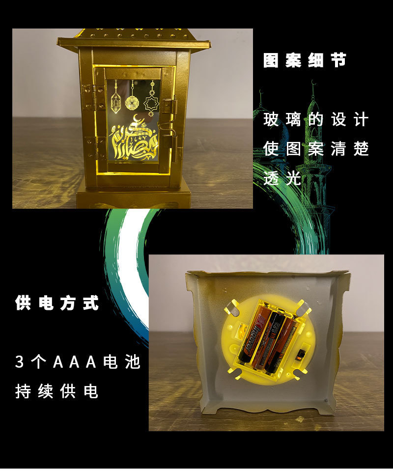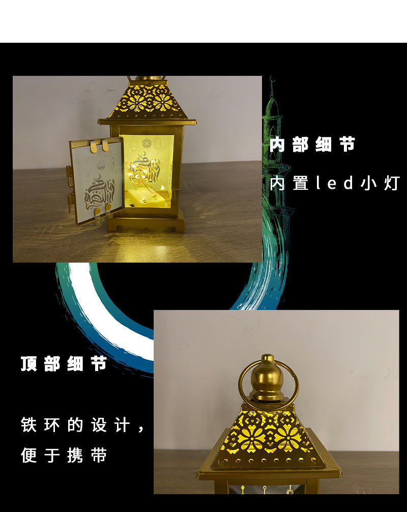 外贸专供Eid定制铁艺风灯工艺品阿拉伯款灯笼书房灯饰