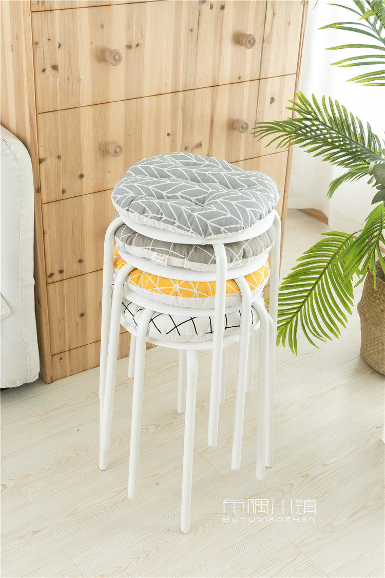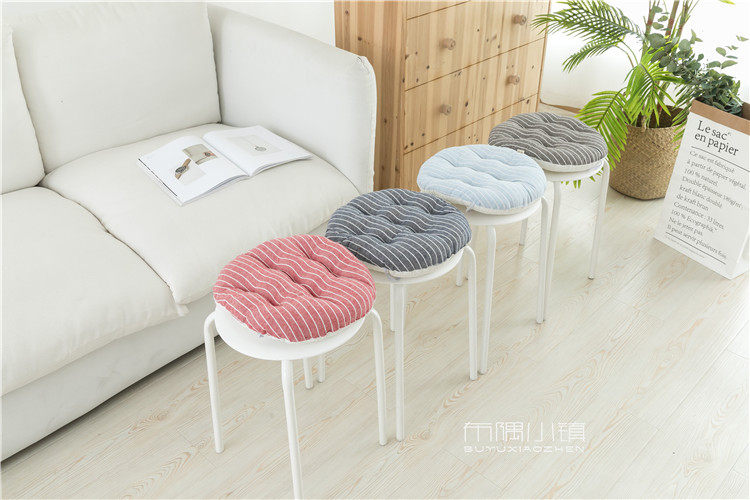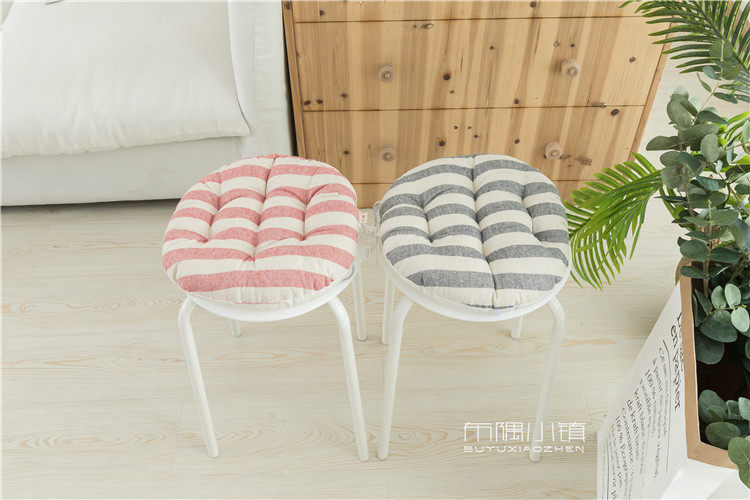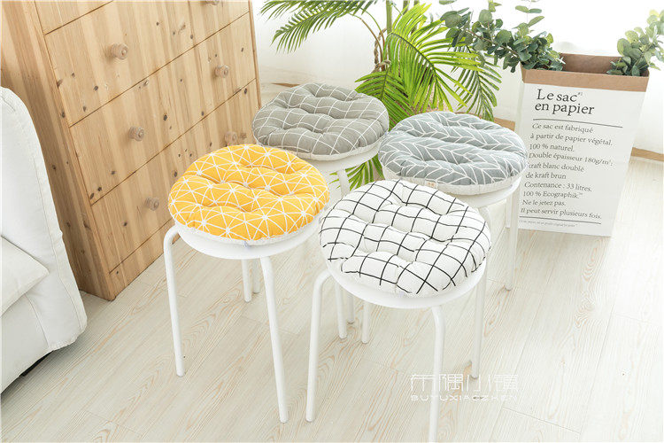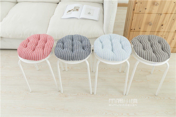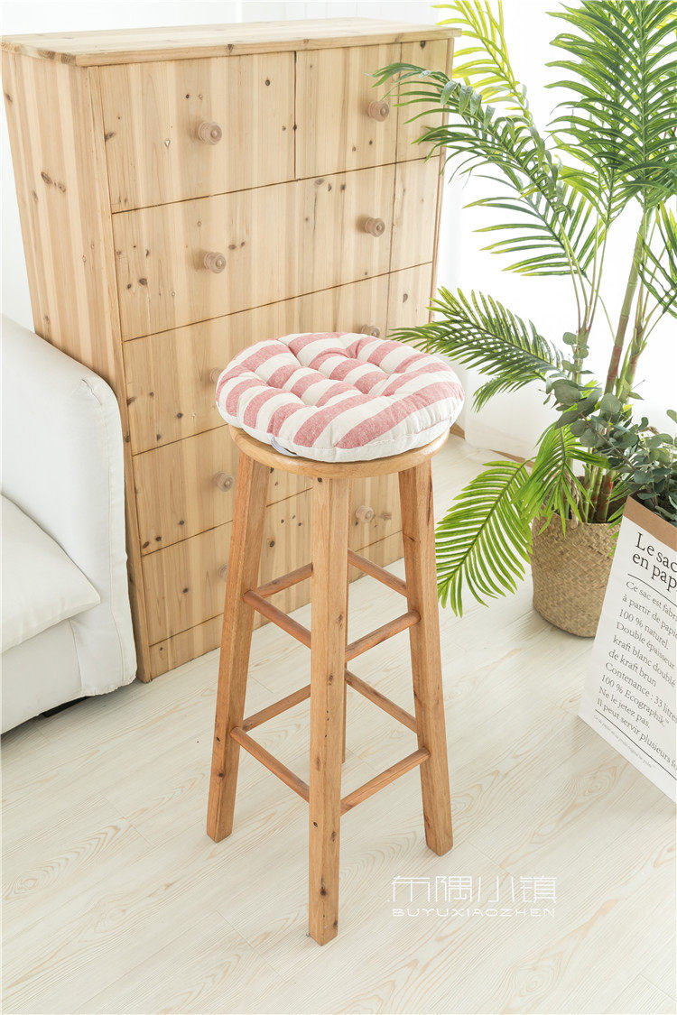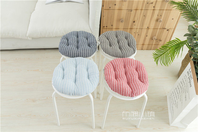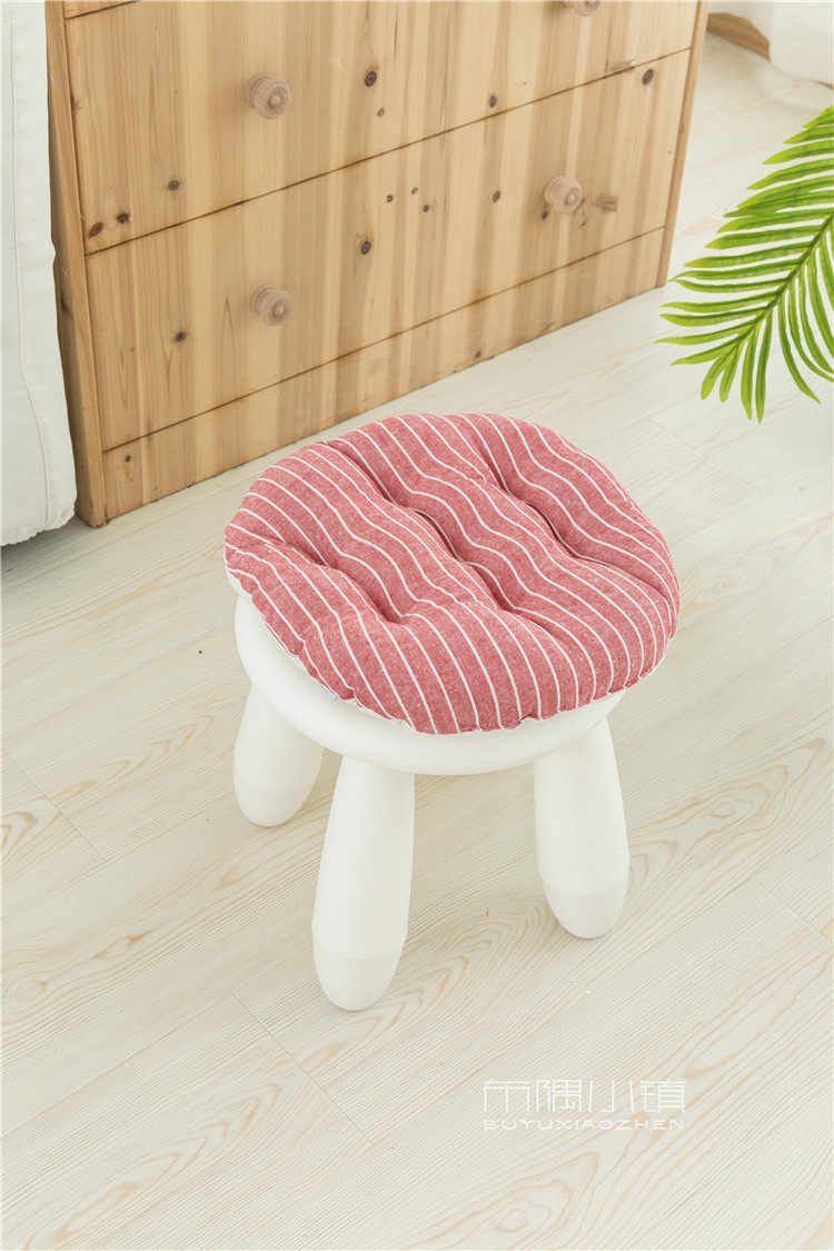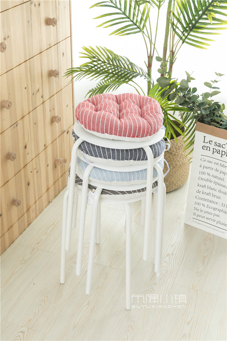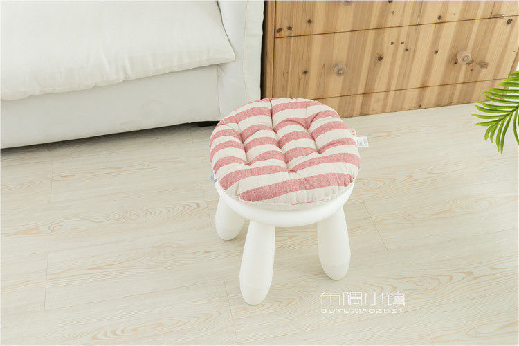 北欧日式圆形餐凳椅垫幼儿园教室坐垫地垫防滑绑带棉麻学车用加厚