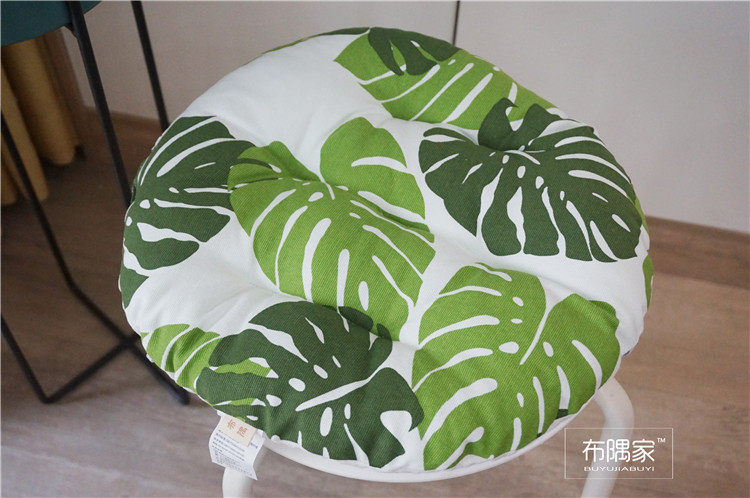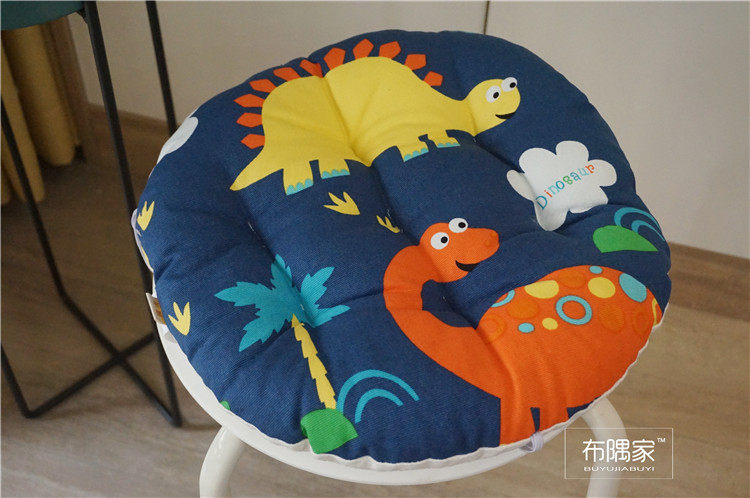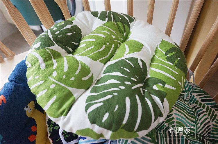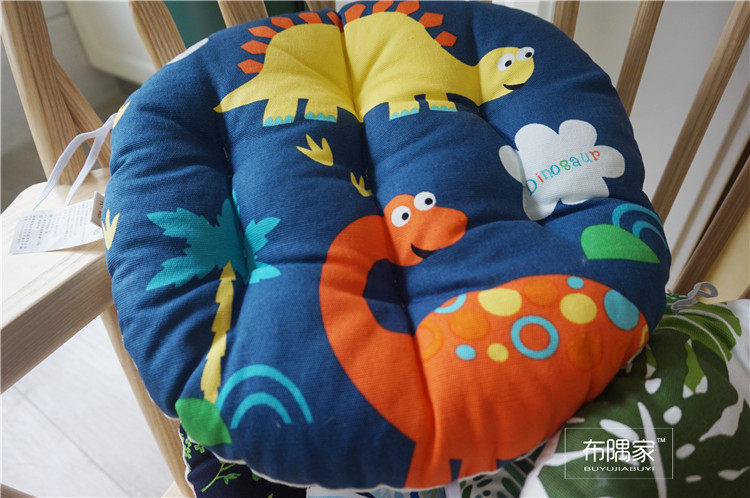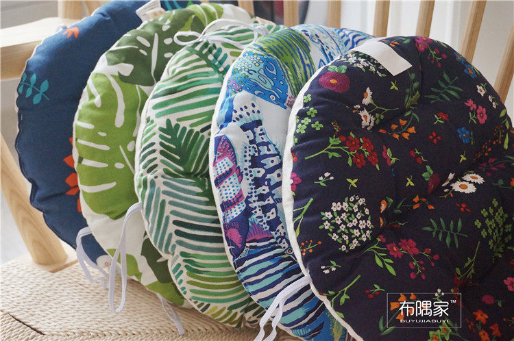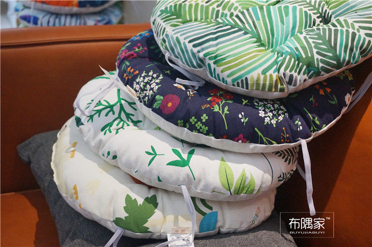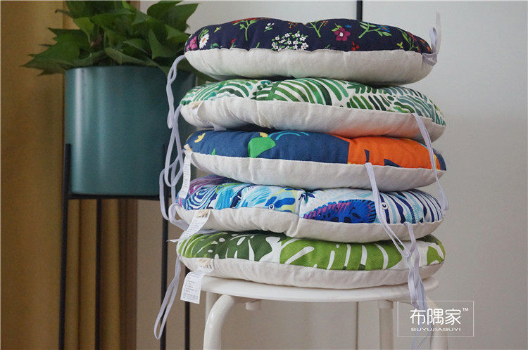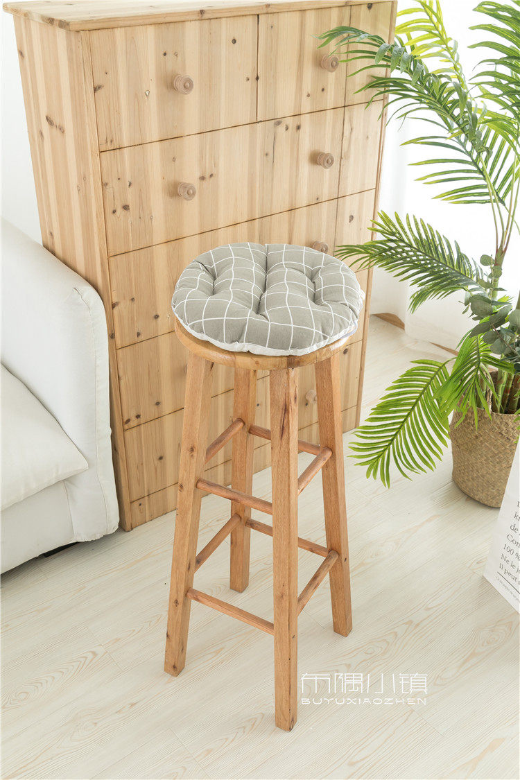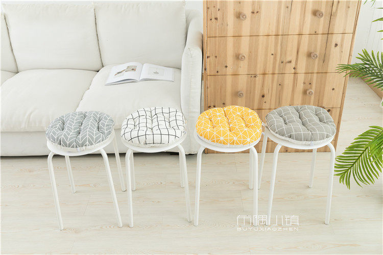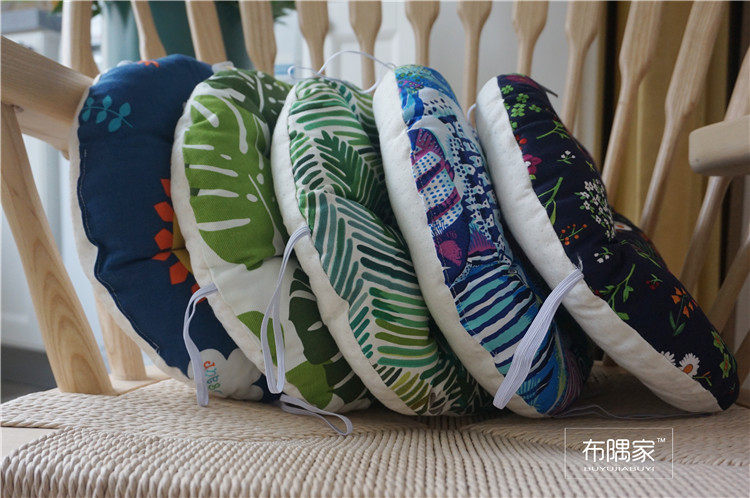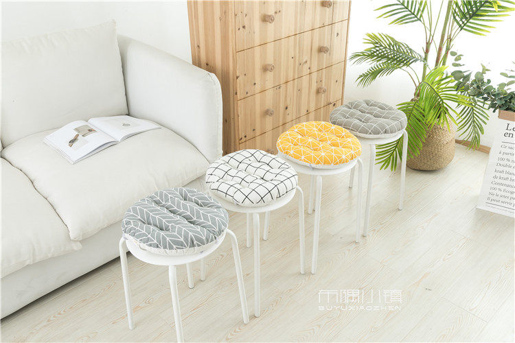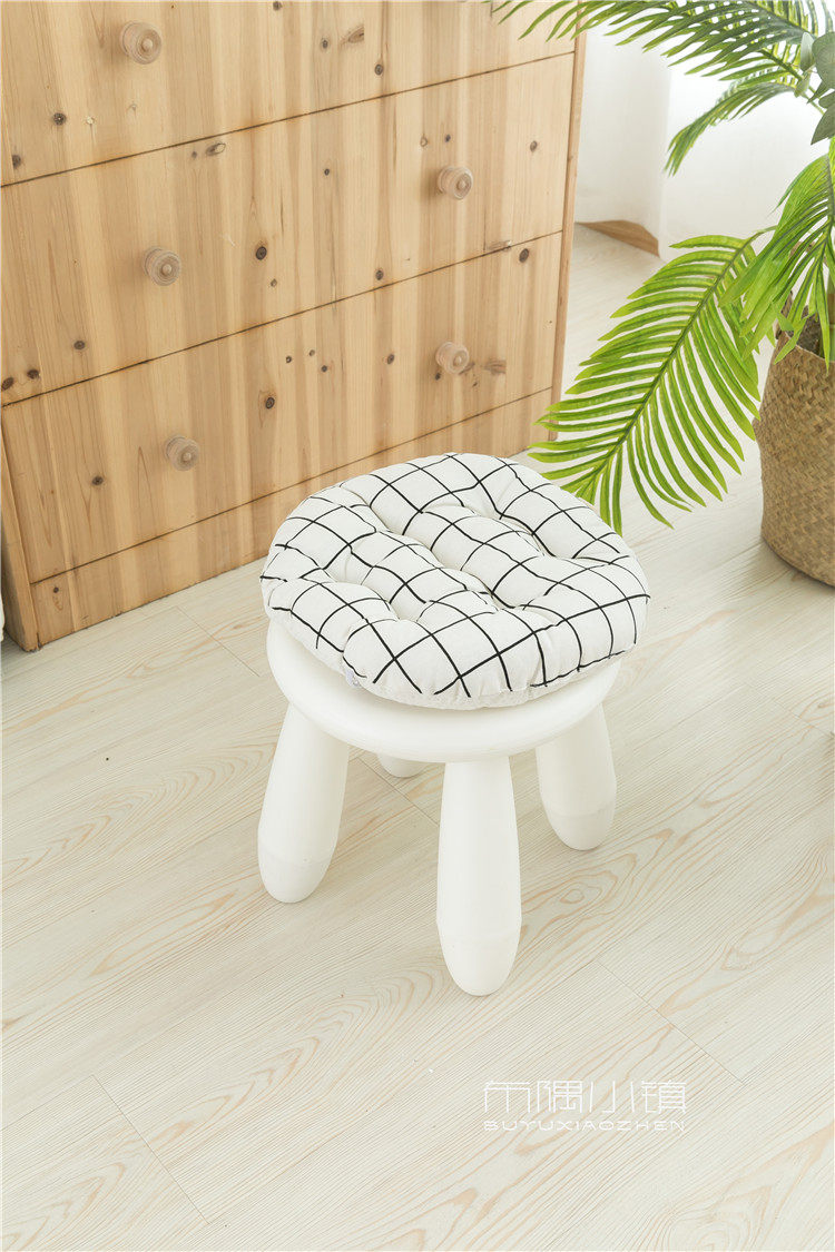 北欧日式圆形餐凳椅垫幼儿园教室坐垫地垫防滑绑带棉麻学车用加厚