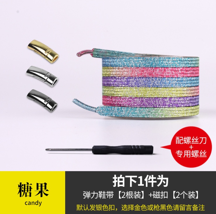 糖果金色银色彩色珠光免系免绑弹力松紧磁扣懒人鞋带
