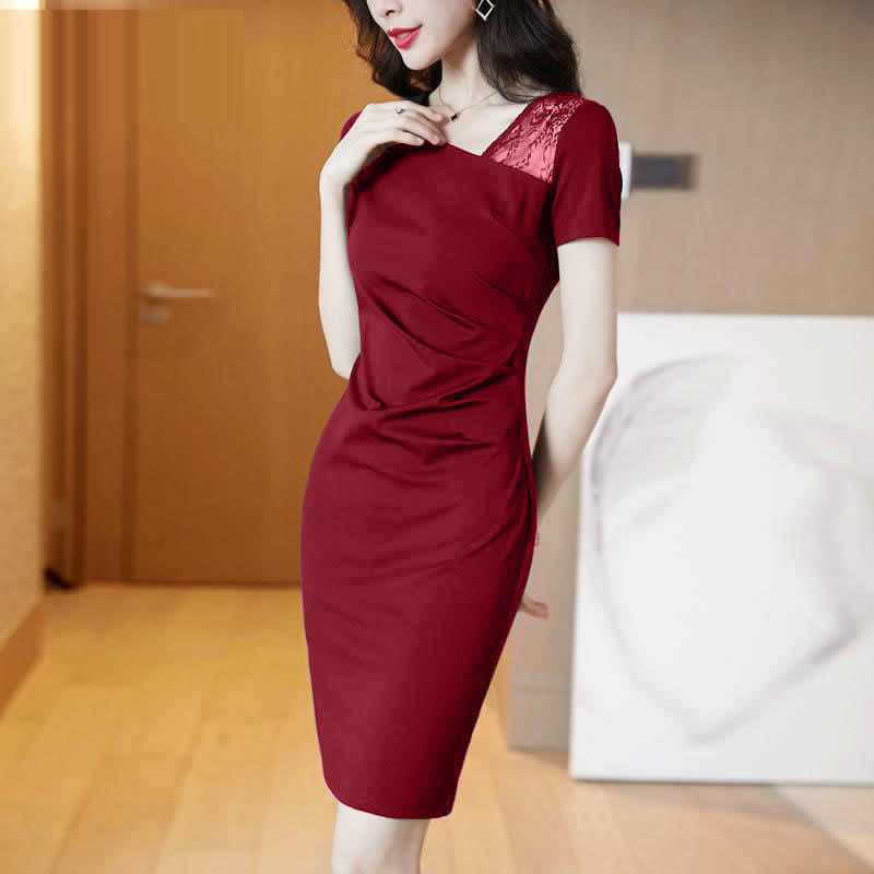 大码连衣裙韩版通勤蕾丝黑色中长款裙子女夏装修身显瘦小黑裙潮女