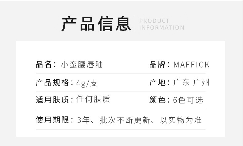 MAFFICK水光镜面小蛮腰唇釉持久水润不掉色成膜不沾杯唇膏女唇彩