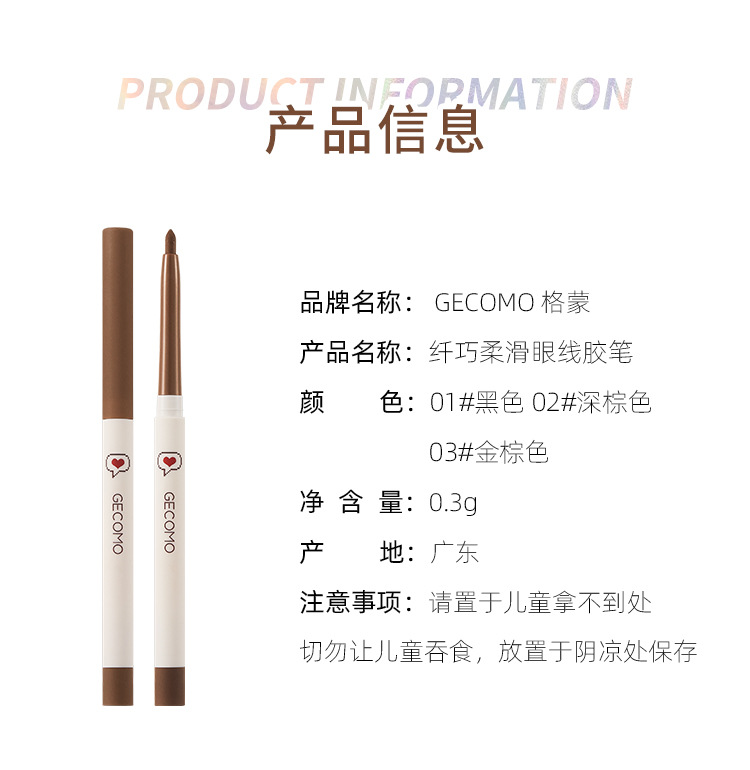 格蒙纤巧柔滑眼线胶笔眼线笔防水不晕染毛刷勾线笔学生款眼线液笔