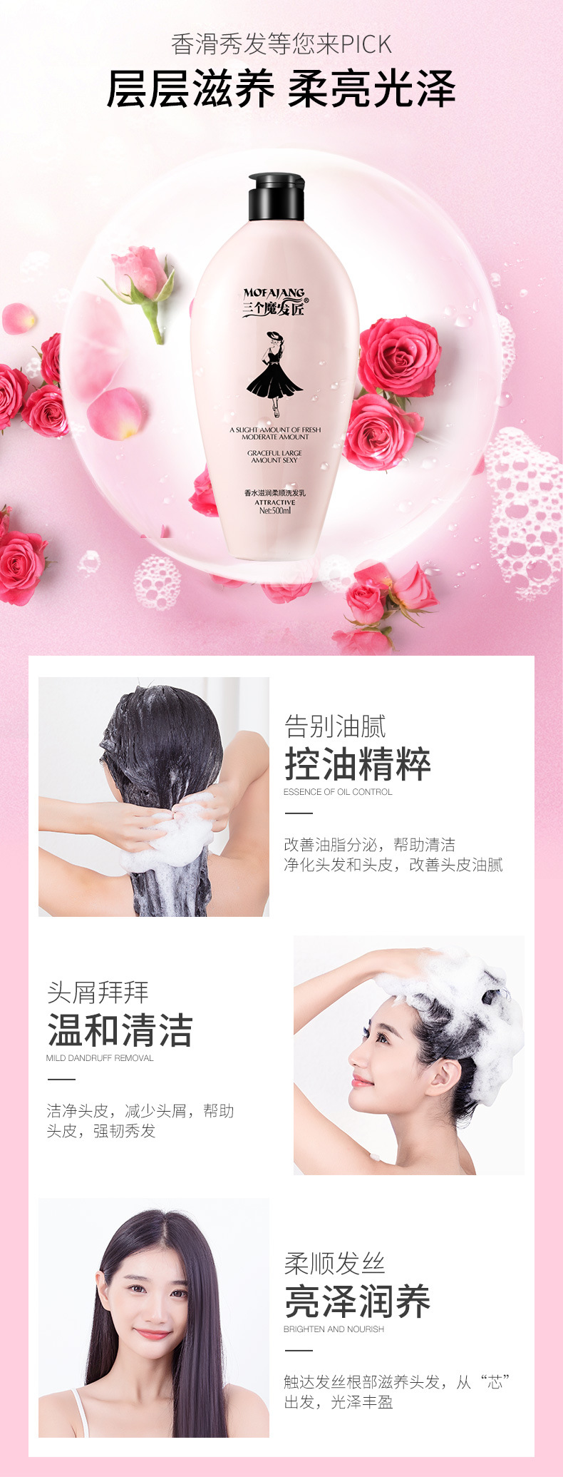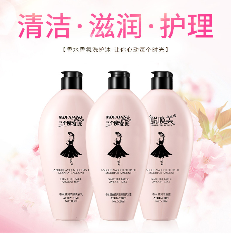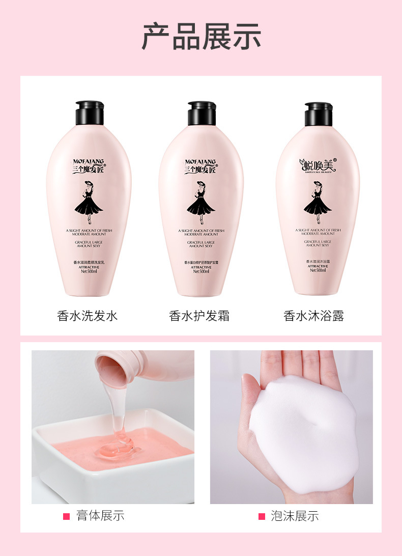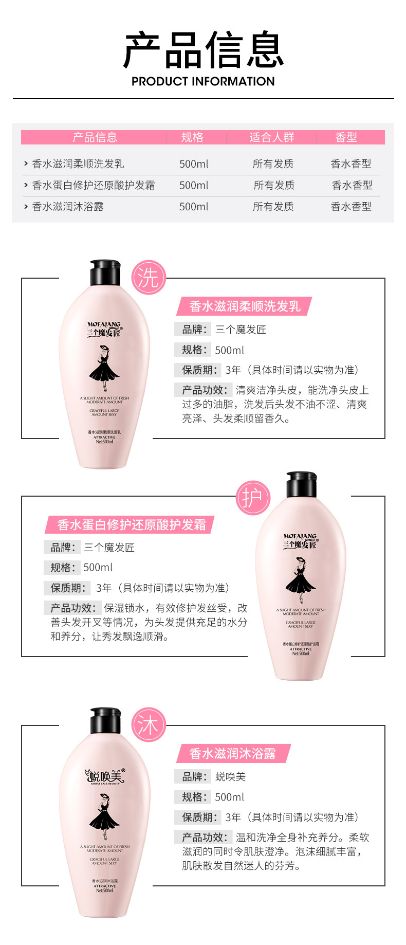 三个魔发匠修护补水保湿护发素 黑裙香氛去屑洗发水 小滋润沐浴露