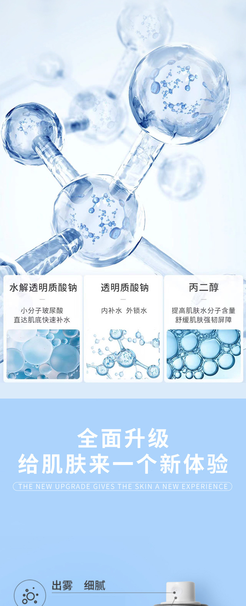 | hyaluronic acid moisturizing spray 180ml (plastic bottle)(玻尿酸补水喷雾180ml(塑料瓶)) | USD $0.0 | 233045 bottle available |