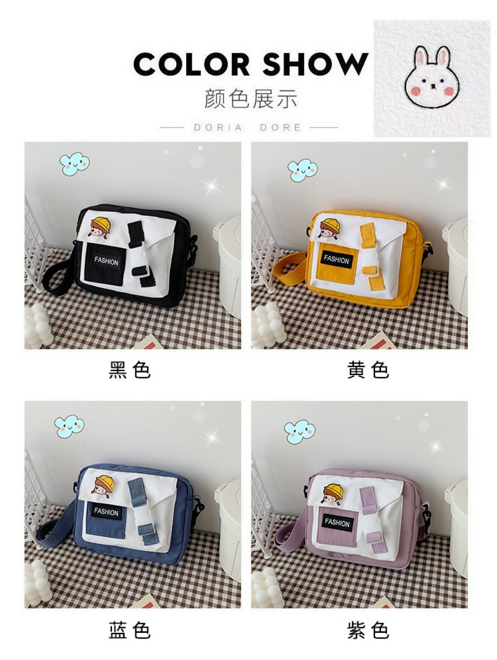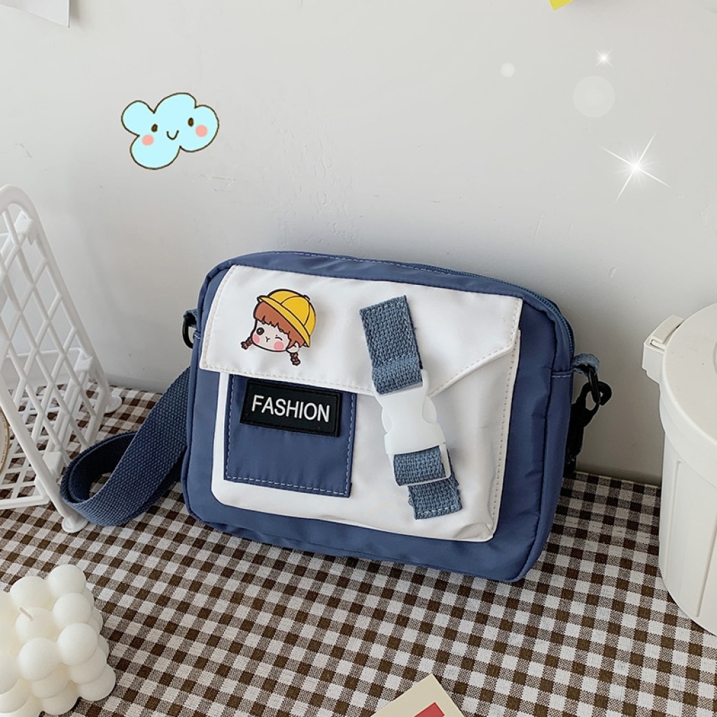 韩版时尚尼龙小方包横款原宿少女纯色单肩包 软妹尼龙单肩斜跨包
