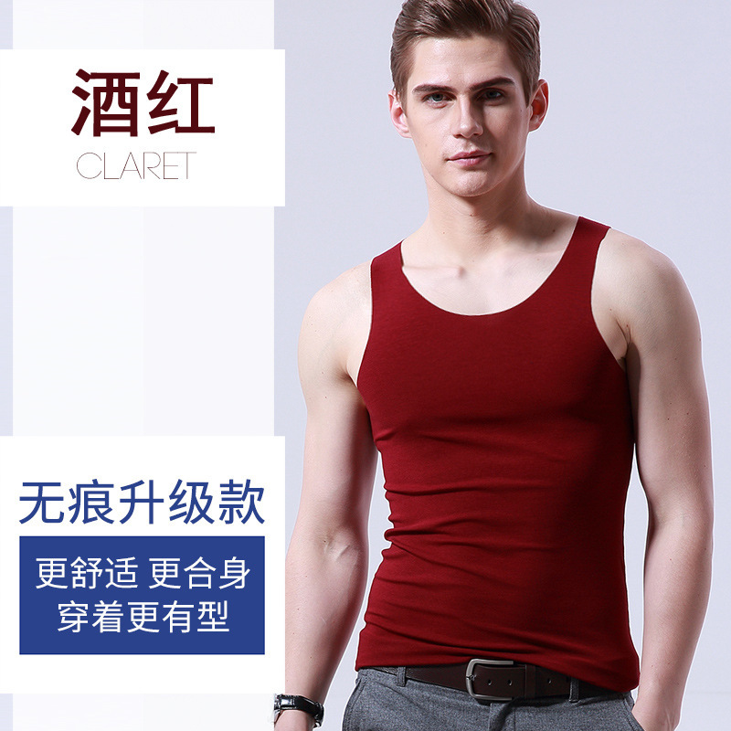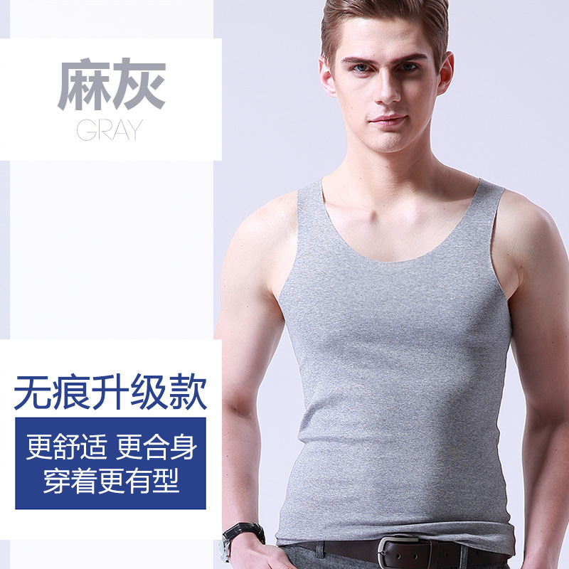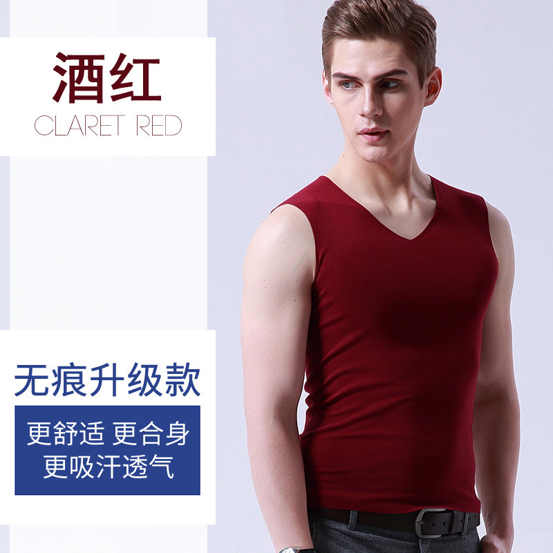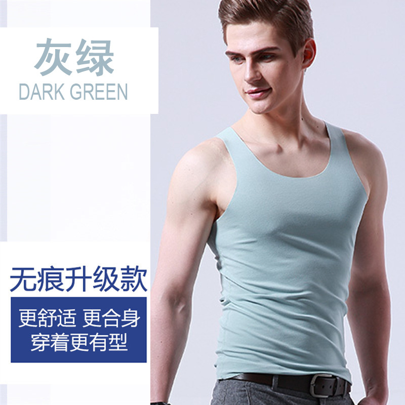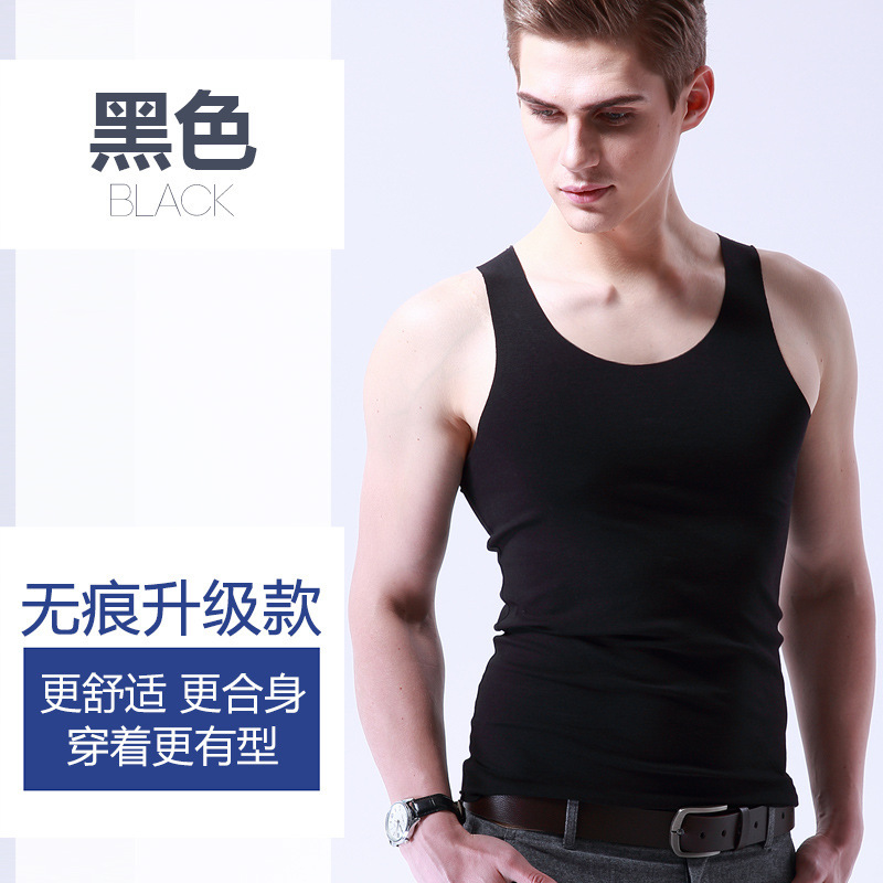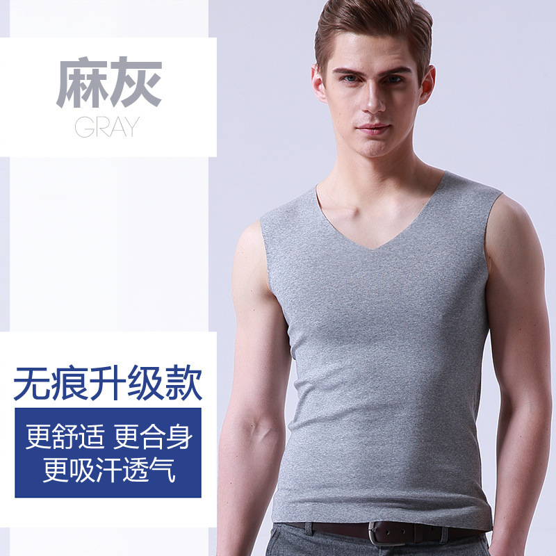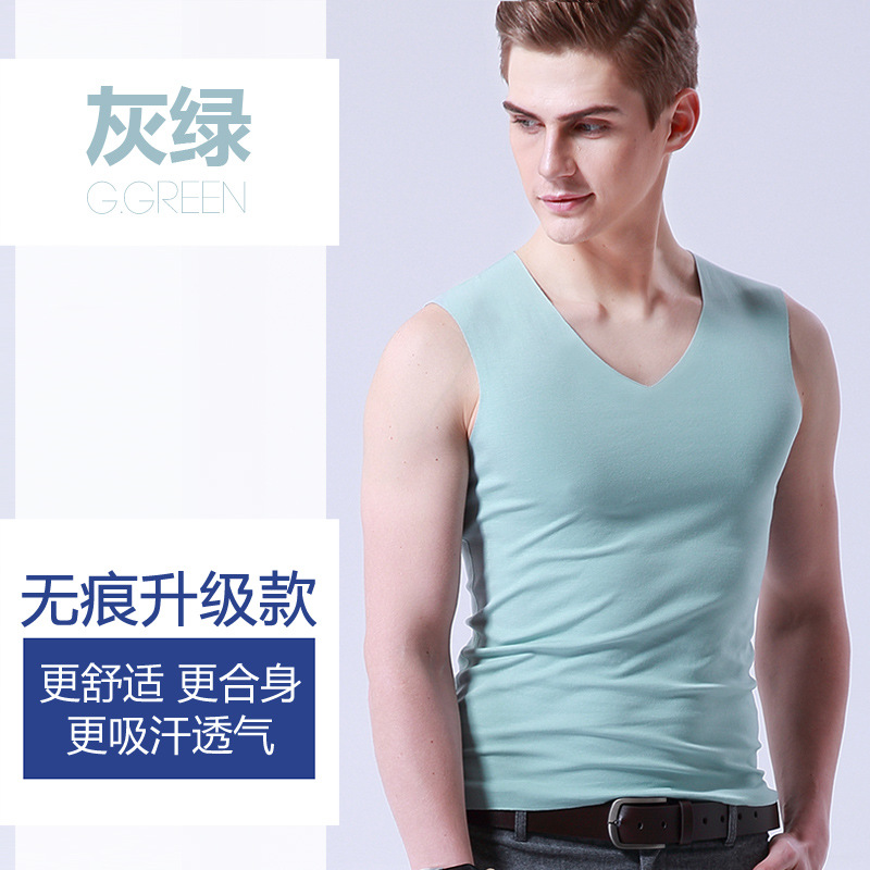 男士冰丝无痕背心白色夏季紧身宽肩V领运动无袖打底薄款