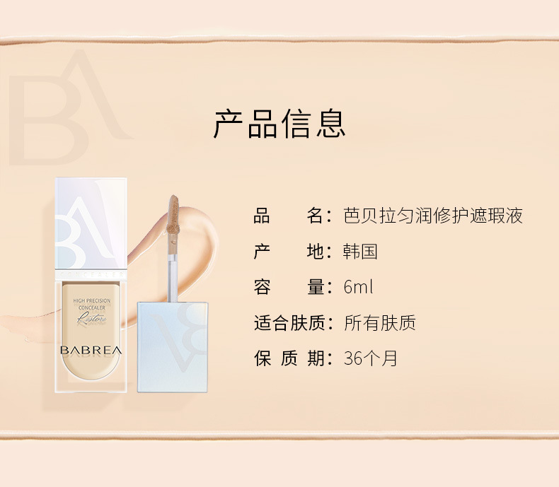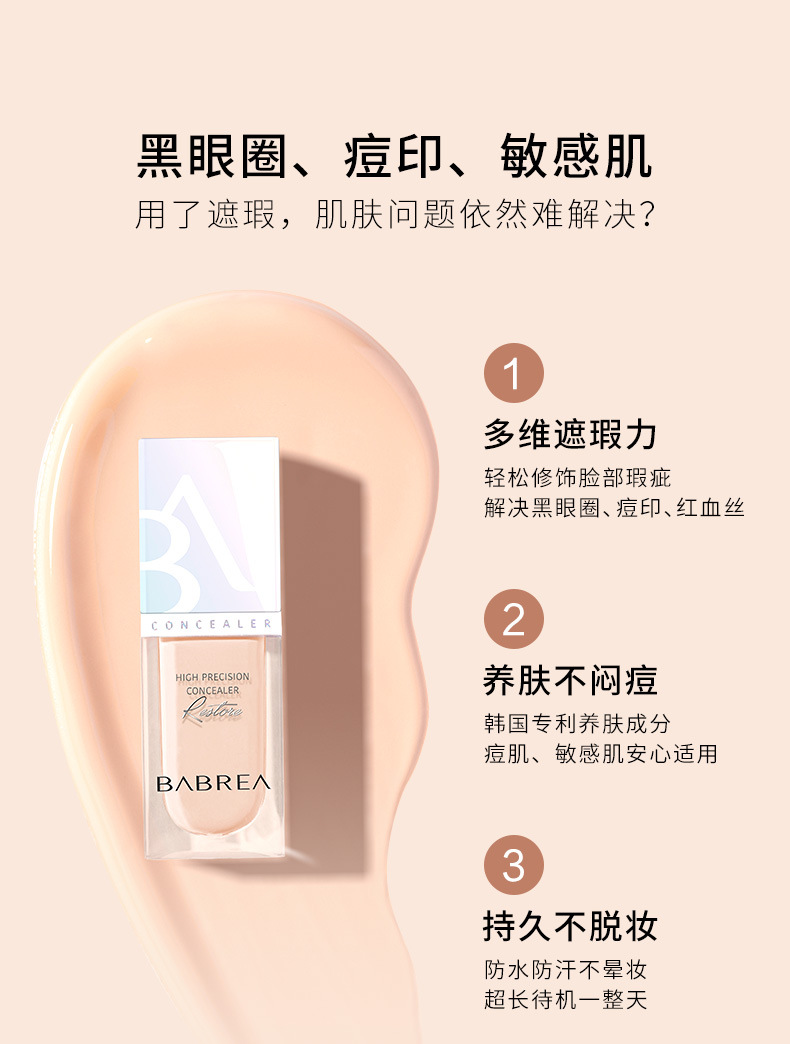 芭贝拉遮瑕液粉底膏保湿遮盖痘印脸部熊猫眼斑点官方旗舰店巴贝拉
