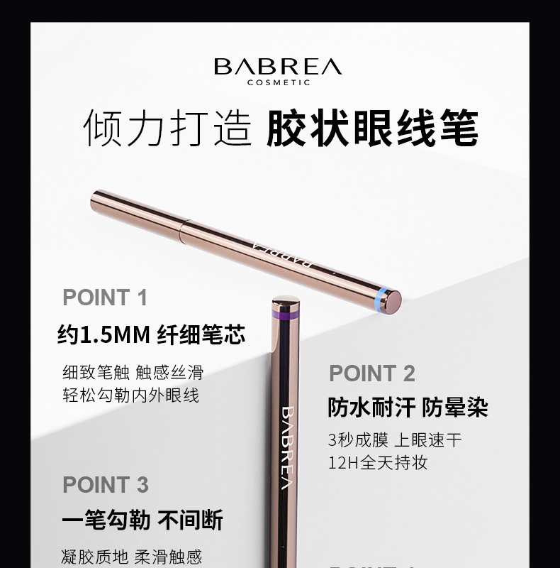 芭贝拉眼线胶笔不晕染液铅笔式硬头彩色眼线笔巴贝拉初学者学生