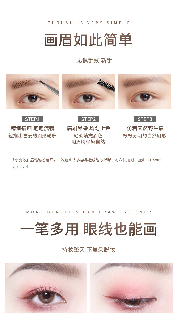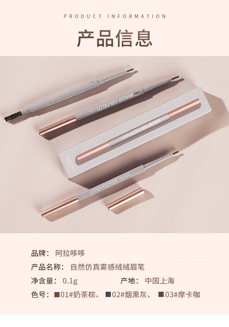 阿拉哆哆双头眉笔持妆眉笔卡其色彩眉笔新手彩妆源头厂家一件代发