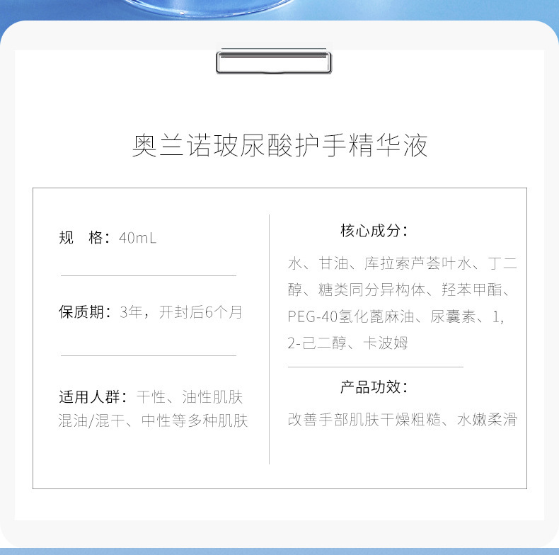 奥兰诺玻尿suan护手精华液滋润保湿补水不油腻防干裂护手霜现货