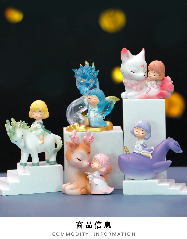 轻语上古传说盲盒潮玩手办汽车车载摆件神龙灵狐仙鹿创意儿童礼物