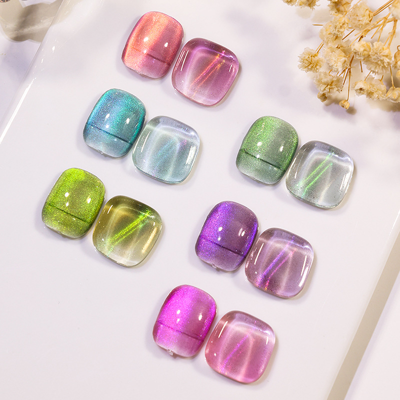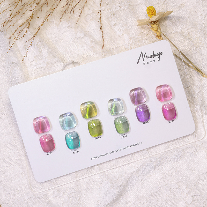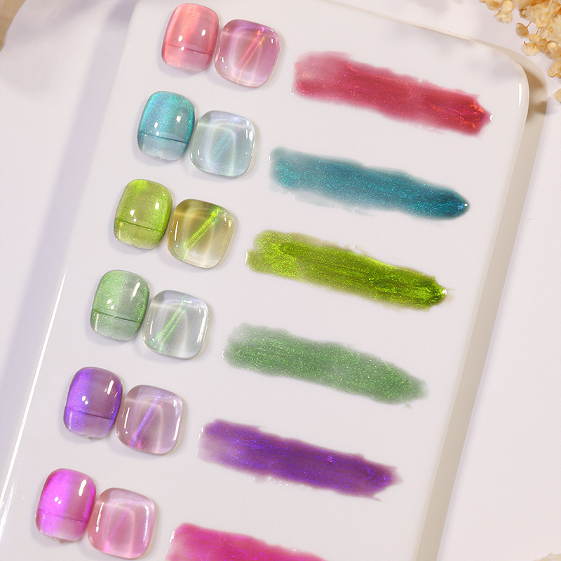 暮色罗格美甲2023年夏季新款玻璃润彩猫眼6色甲油胶显白晶石猫眼