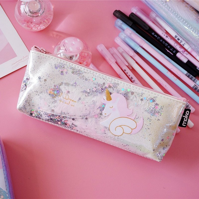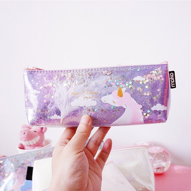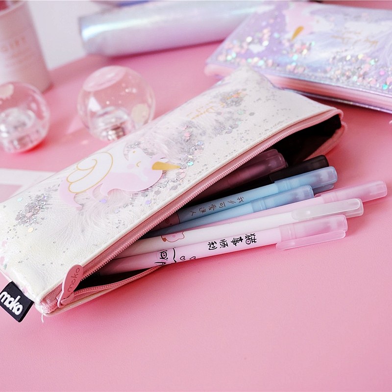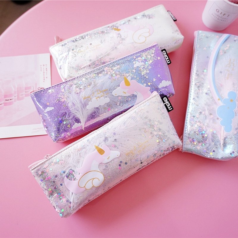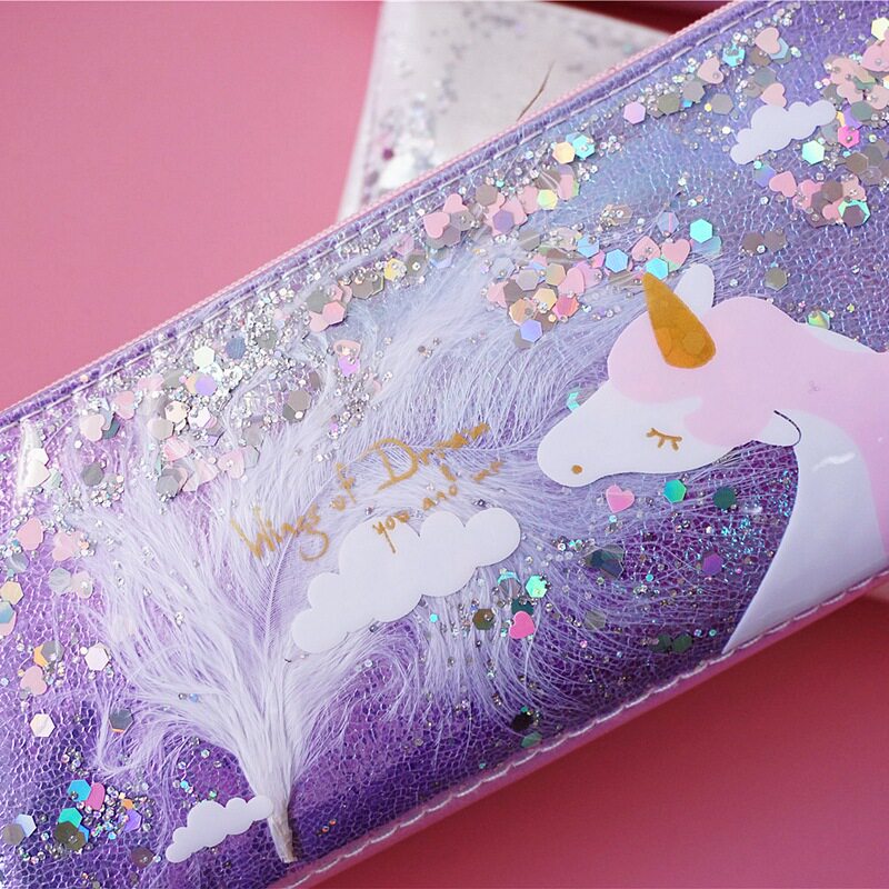 韩版少女心独角兽之翼笔袋时尚可爱皮革文具袋学生女小清新收纳包