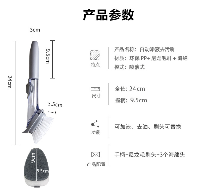 长柄洗锅刷子刷锅不粘油厨房锅刷添加液洗碗海绵刷清洁刷