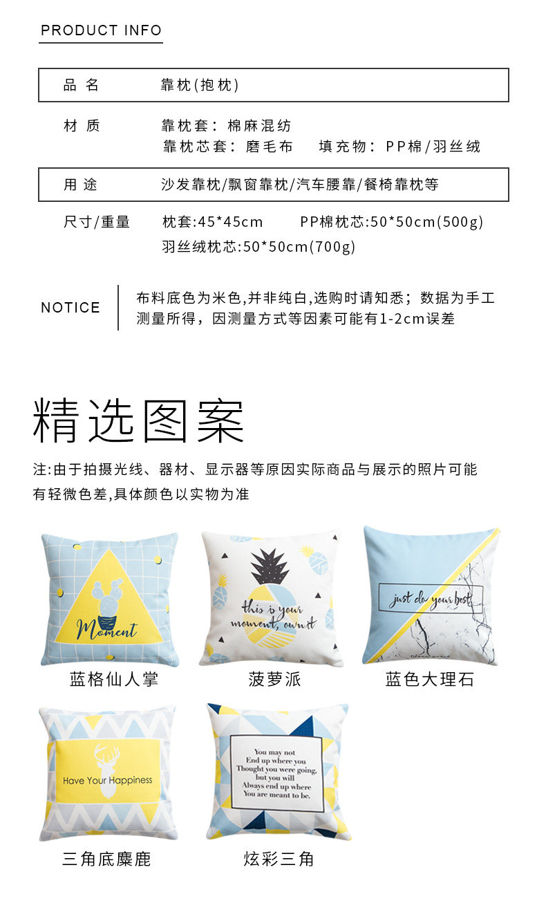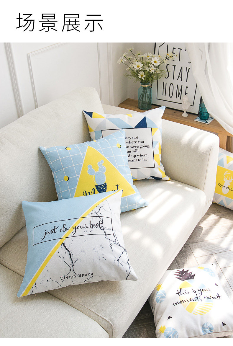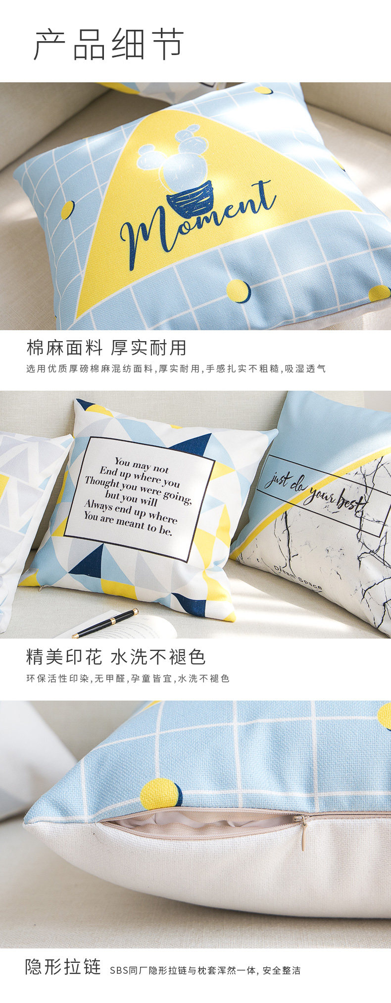 北欧风客厅沙发抱枕靠垫靠背办公室汽车护腰亚麻靠枕套正方形枕头