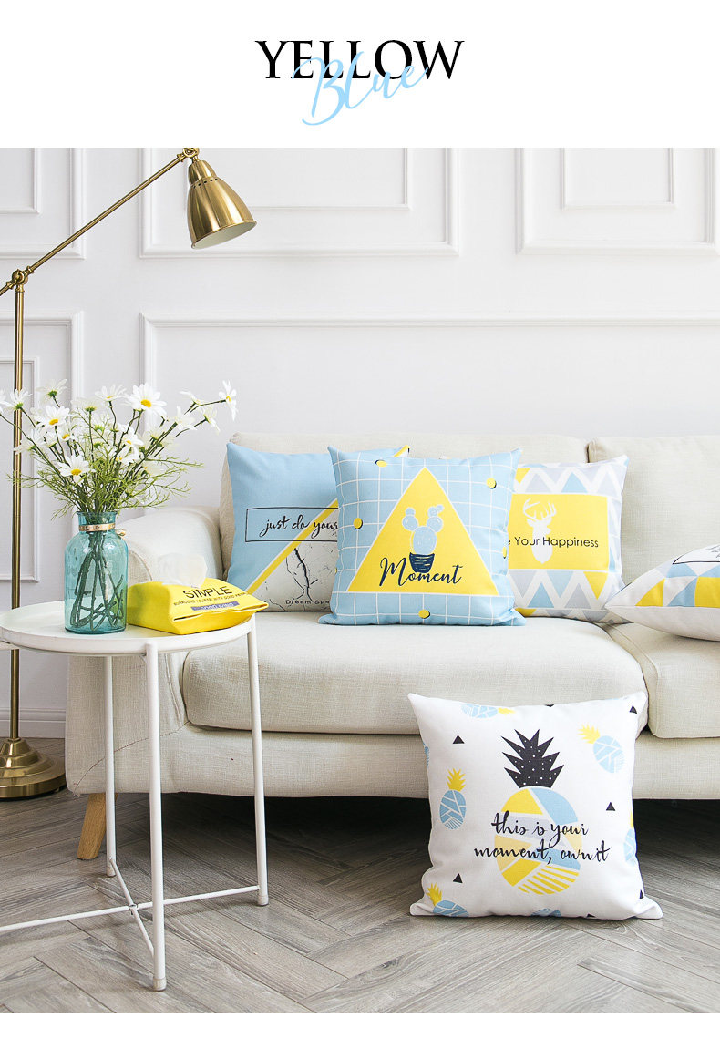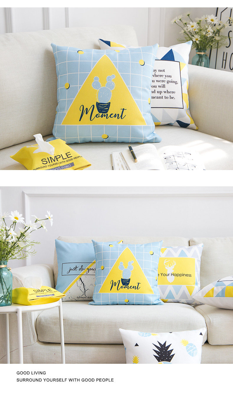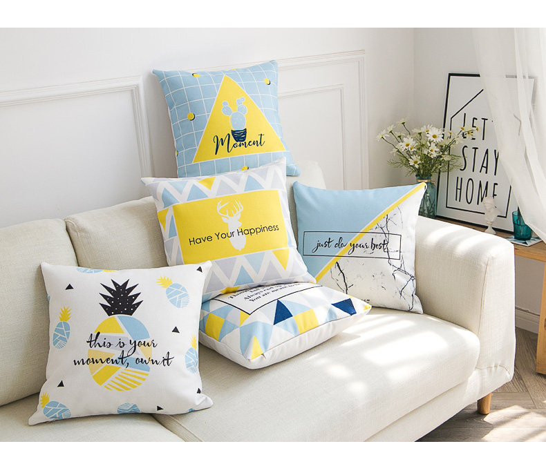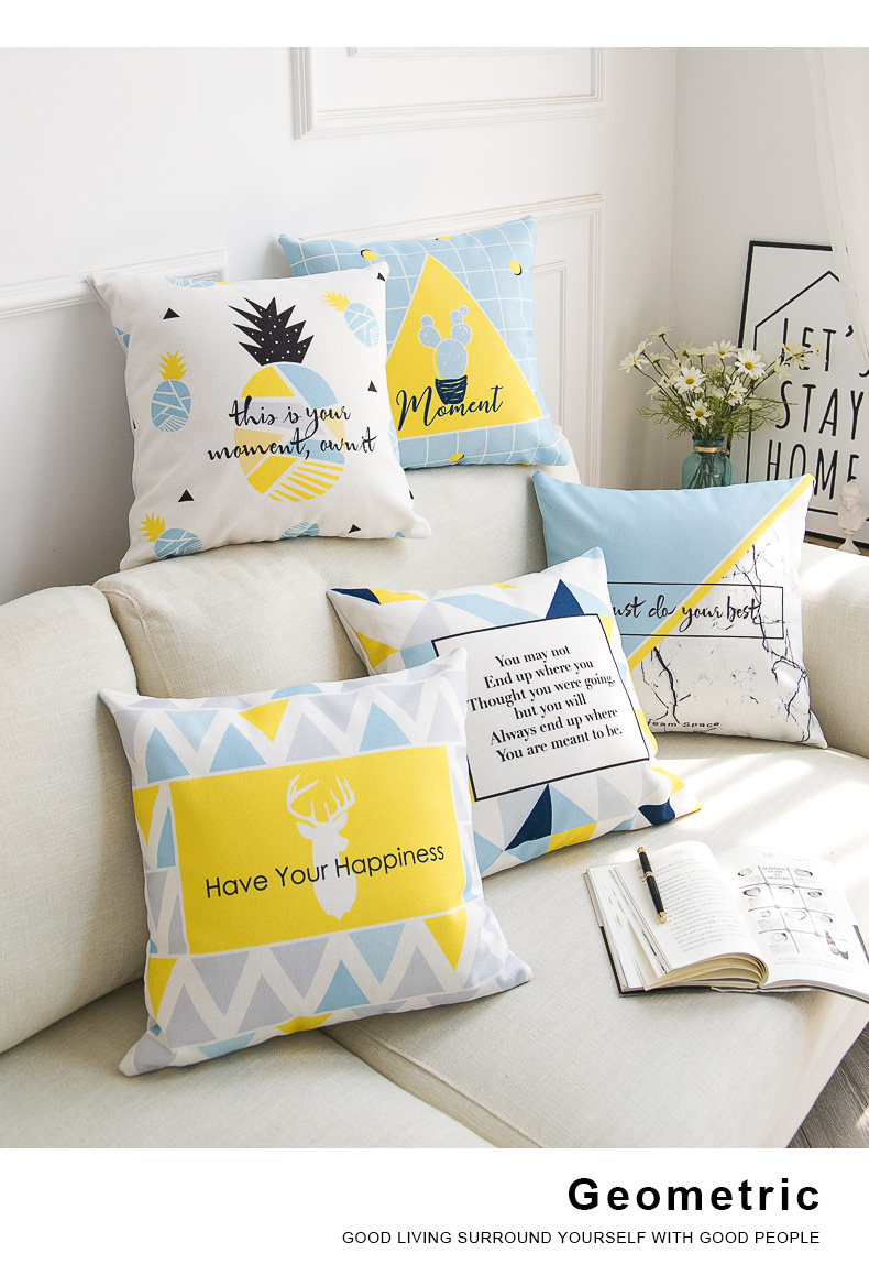 北欧风客厅沙发抱枕靠垫靠背办公室汽车护腰亚麻靠枕套正方形枕头
