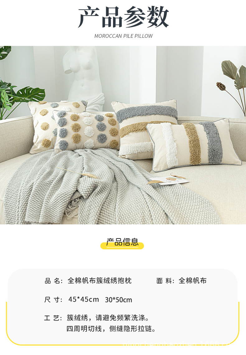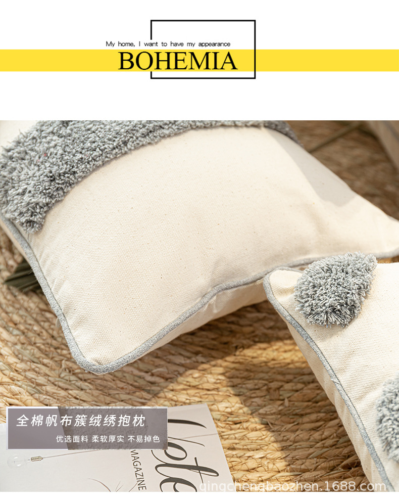 民宿摩洛哥帆布簇绒靠垫床头风枕套枕靠垫绣抱靠垫沙发腰装饰