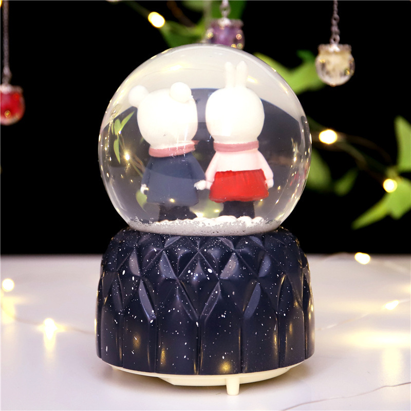 外贸专供星空情侣小熊水晶球飘雪音乐盒天空之城女孩八音盒