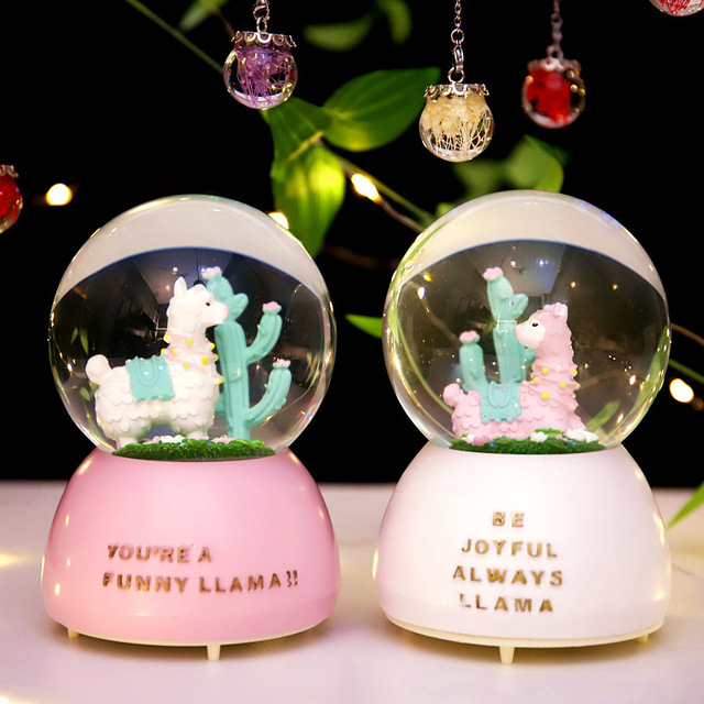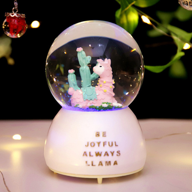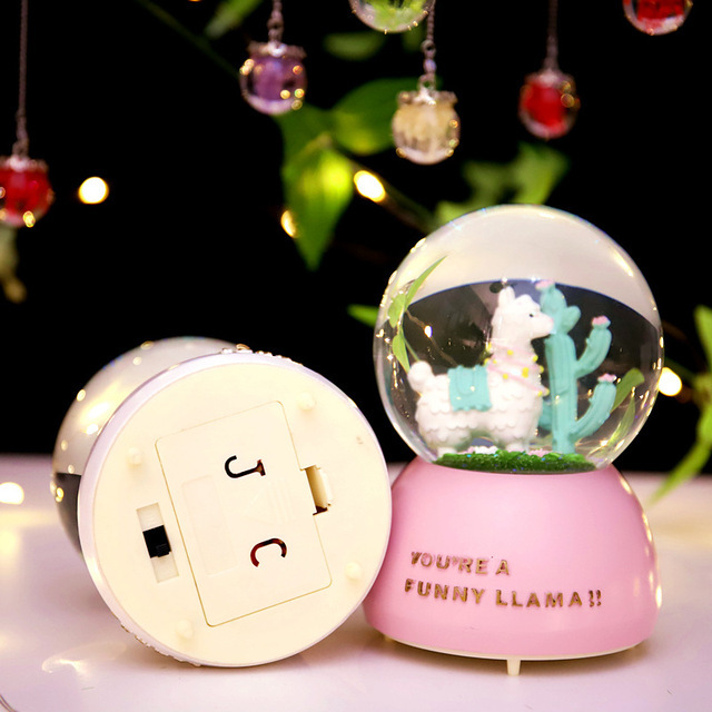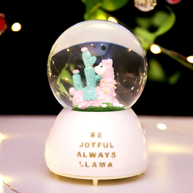 外贸专供创意羊驼少女心卡通萌物水晶球音乐盒八音盒送女孩