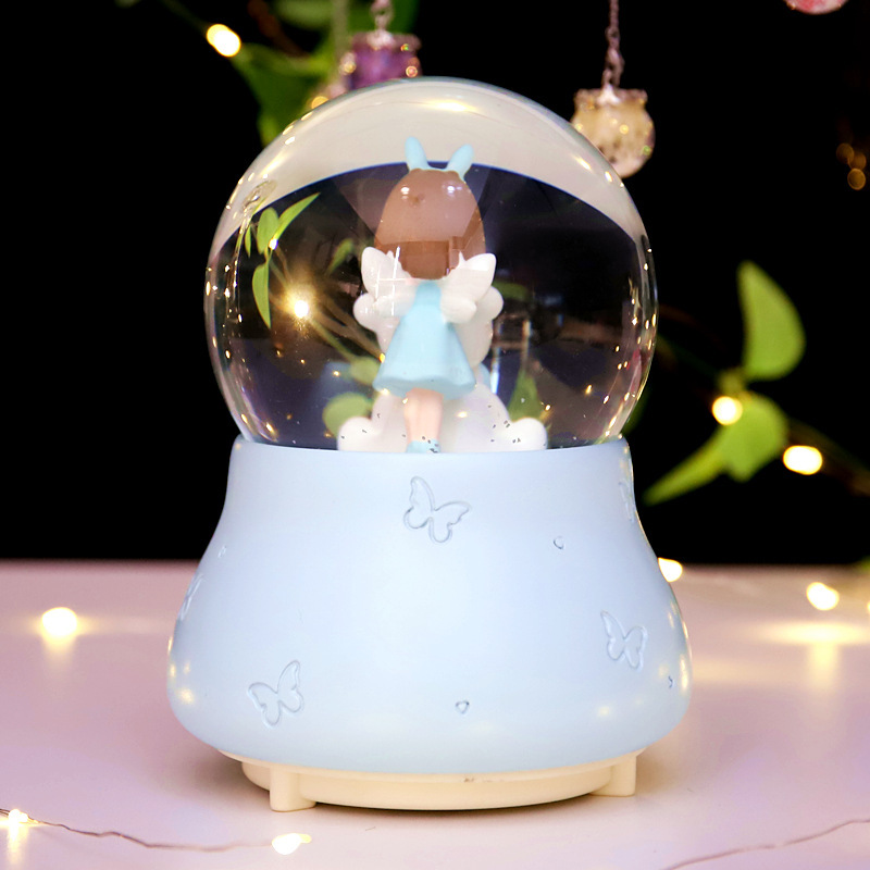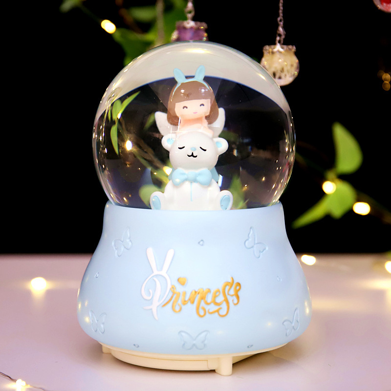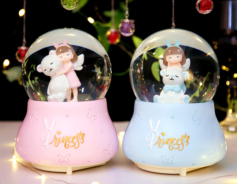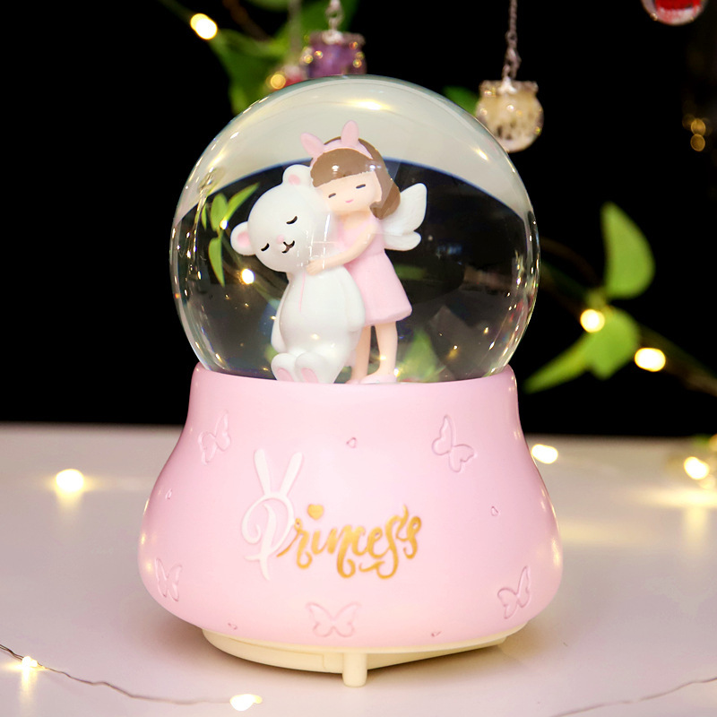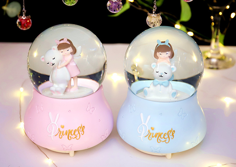 外贸专供卡通天使小熊水晶球音乐盒爱莎公主八音盒小女孩儿童