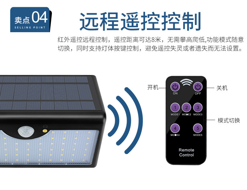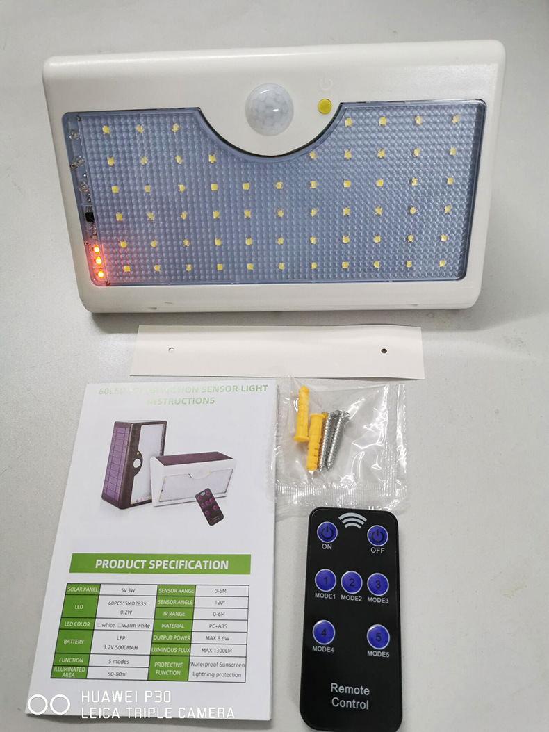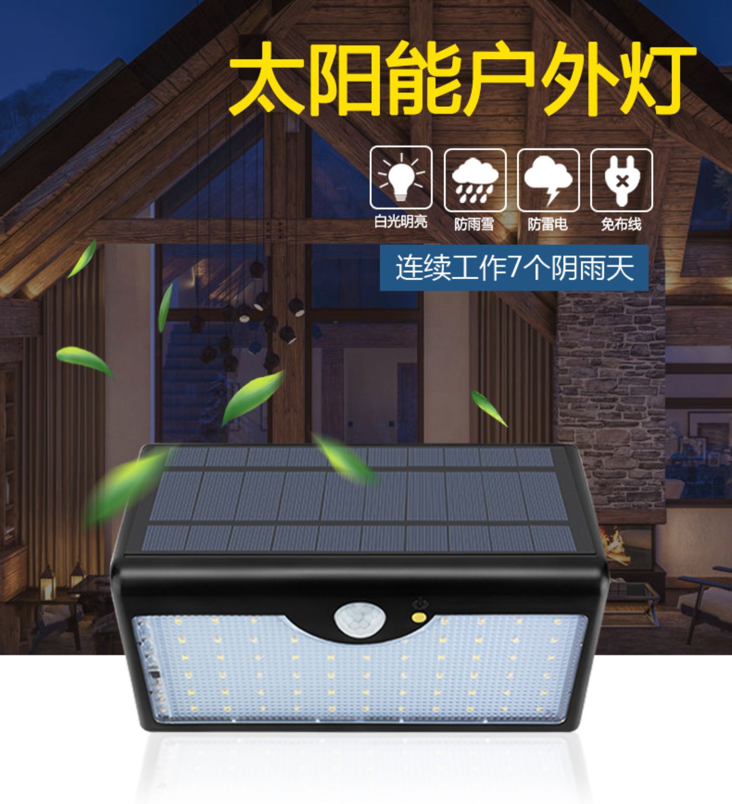 外贸专供60LED太阳能庭院灯防水人体感应灯室外LED路灯家用壁灯