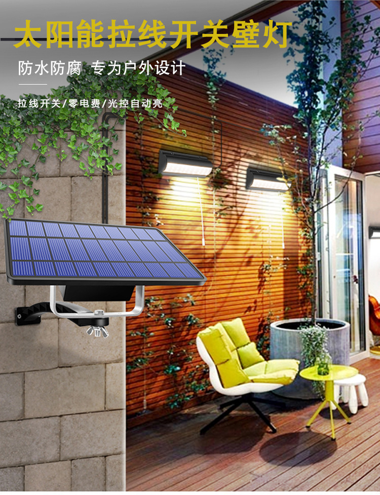 外贸专供一拖二太阳能灯泡拉绳吊灯分体LED灯泡庭院灯拉线吊灯