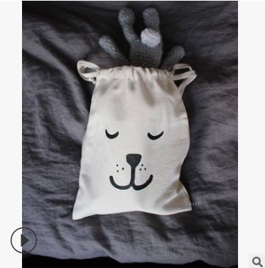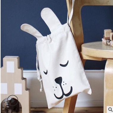 小背包睡熊耳朵全棉帆布束口收纳袋