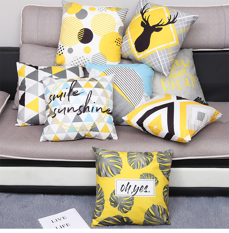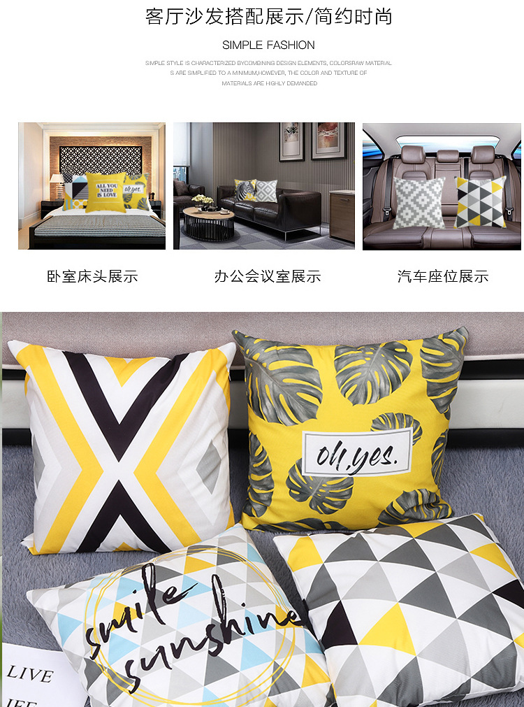 北欧几何绒布靠垫抱枕ins风汽车护腰靠垫办公室午休靠枕床头靠背