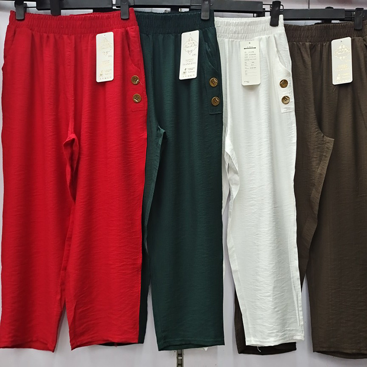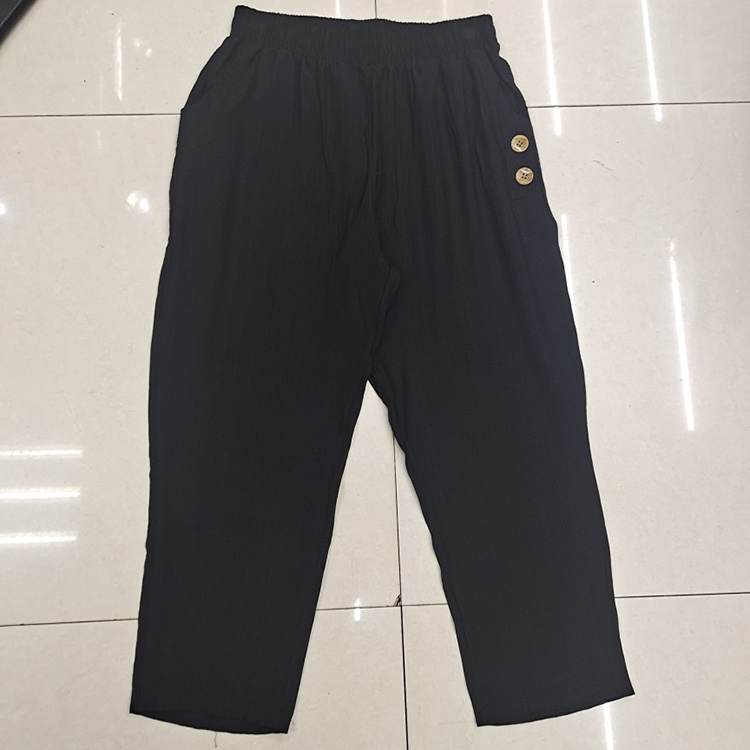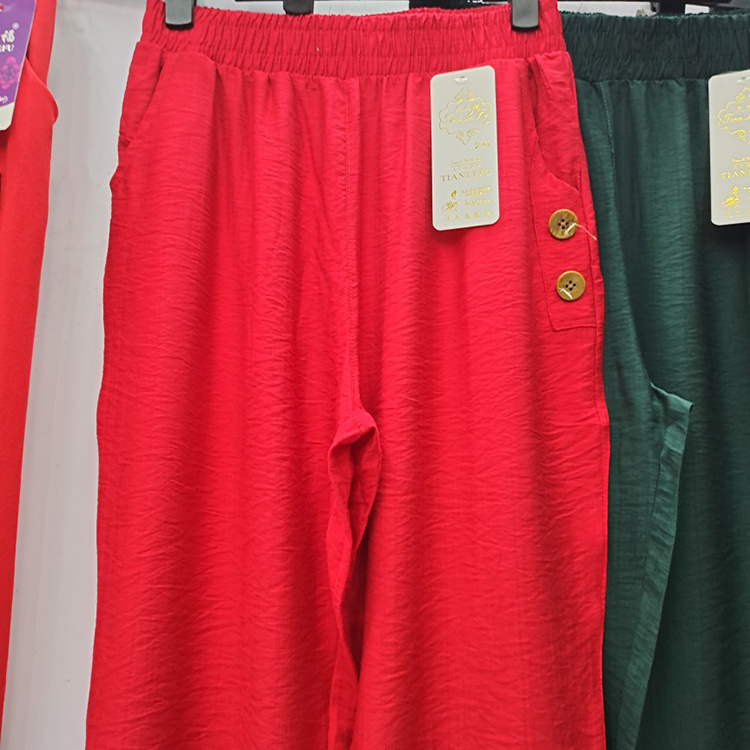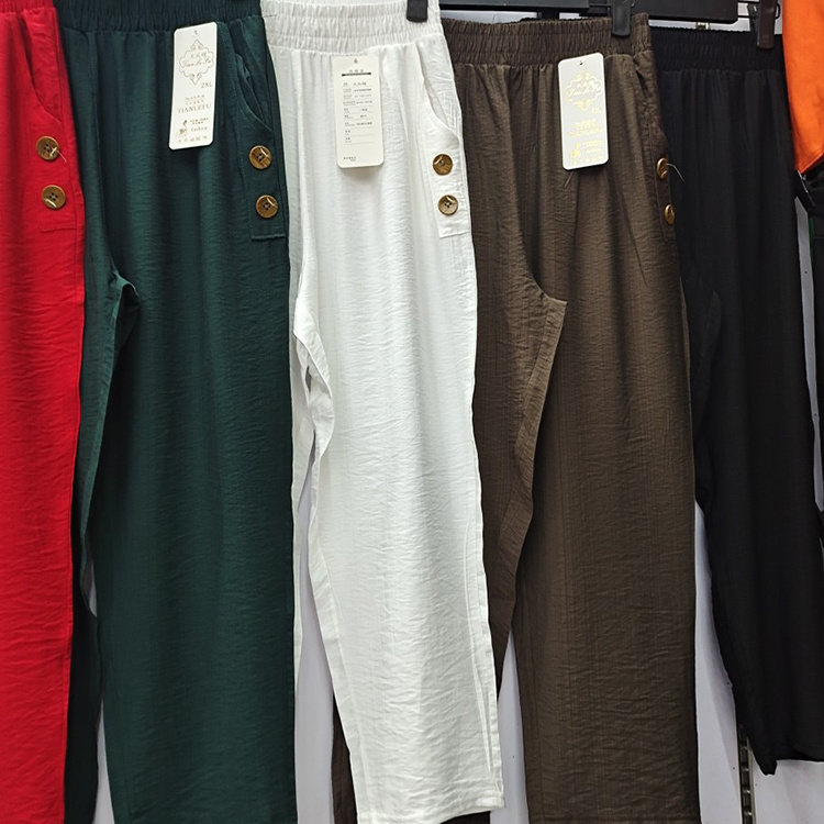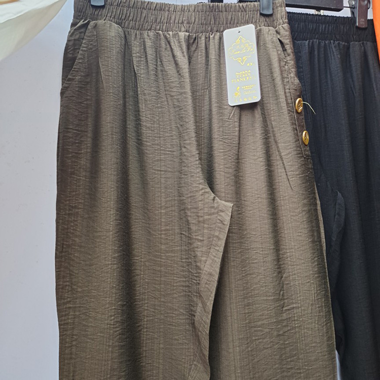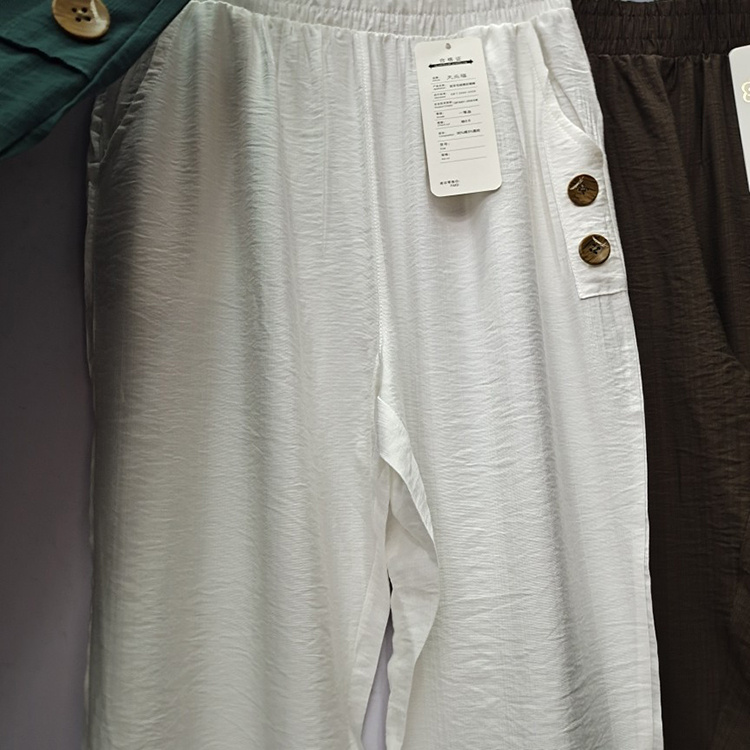 中老年妈妈棉麻九分裤夏季亚麻女裤宽松大码松紧腰休闲裤哈伦裤女