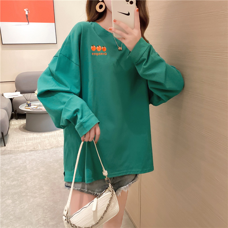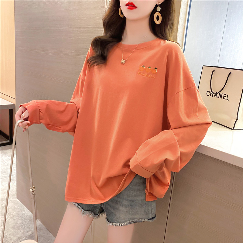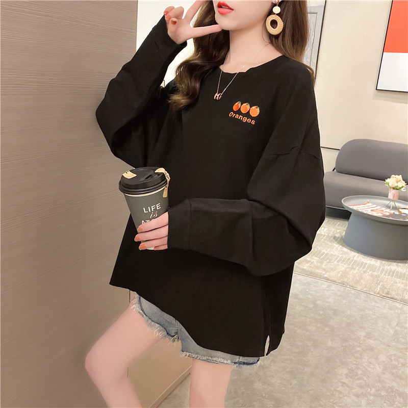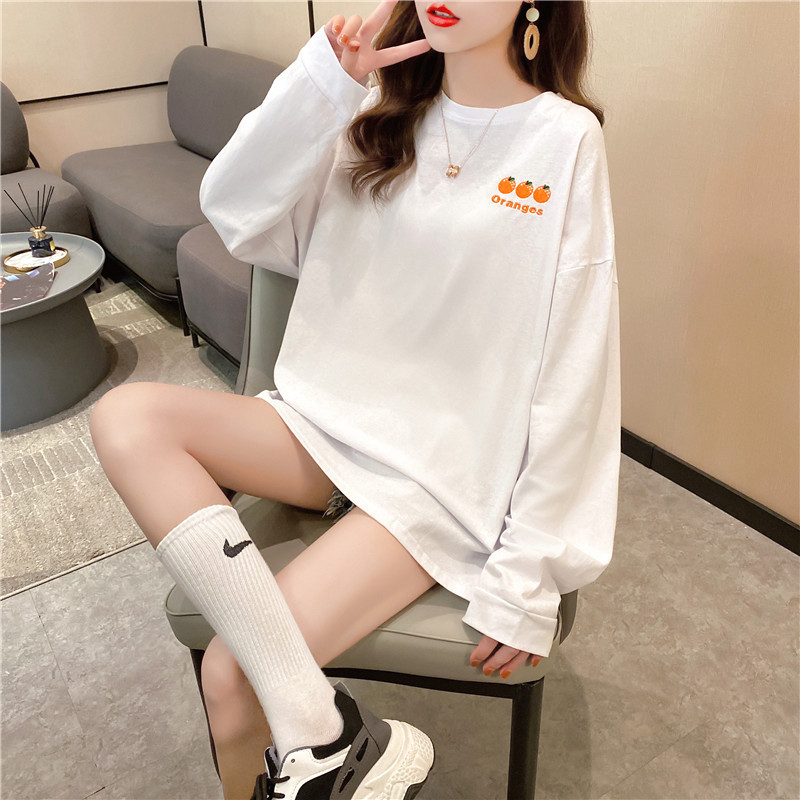 新款秋季女装中长款长袖t恤女士韩版宽松chic上衣女学生一件代发