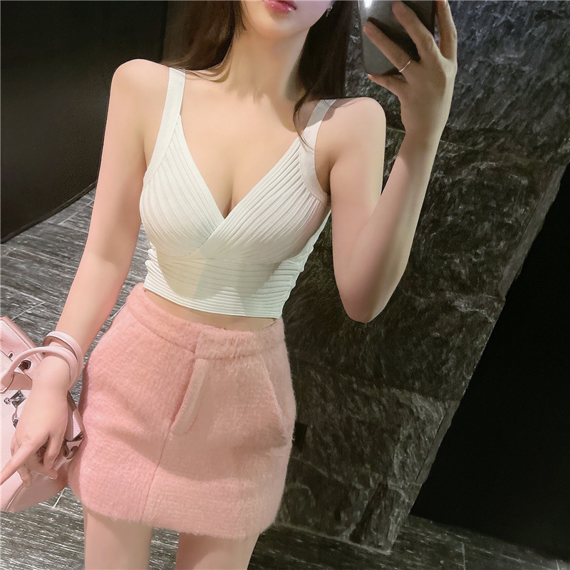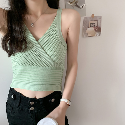 法式小众春夏季新品纯色修身打底针织背心短款内搭弹力吊带上衣女