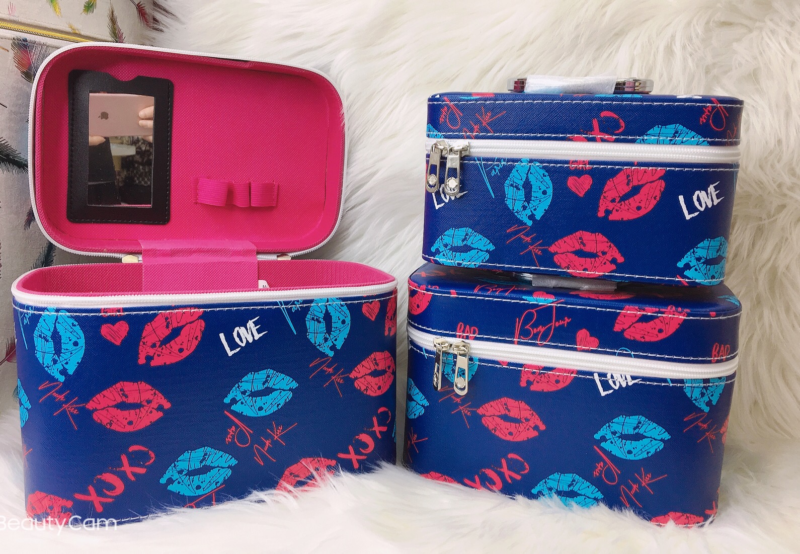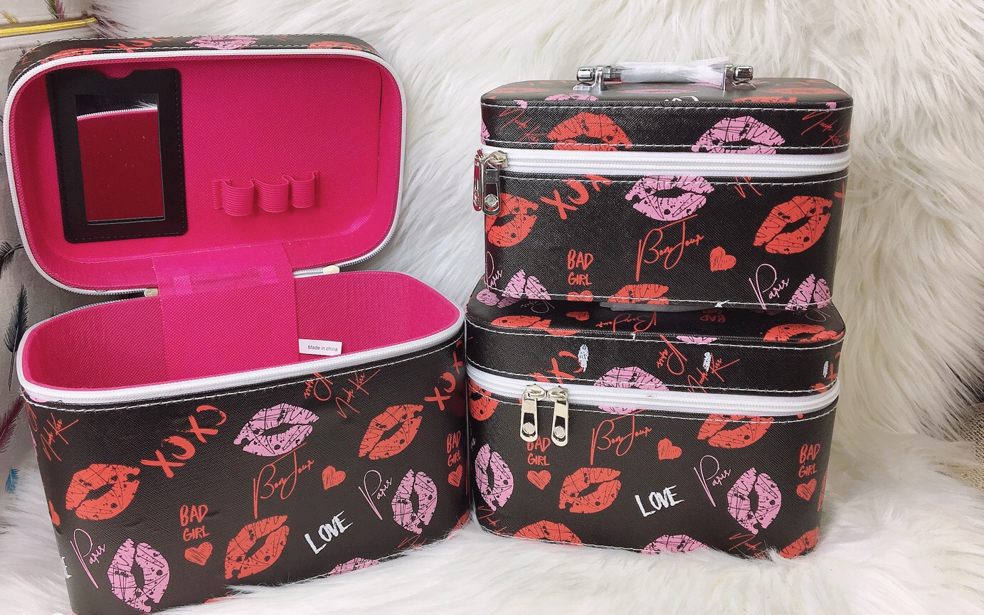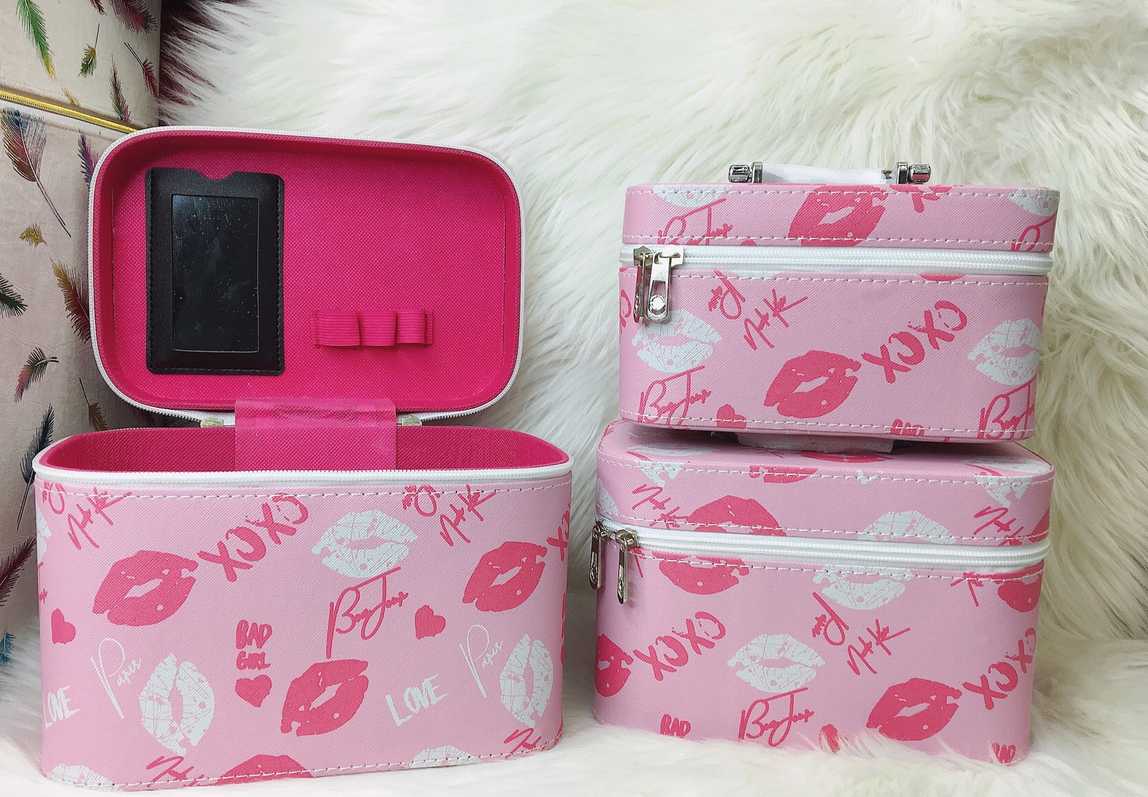 大容量嘴唇化妆箱手提收纳化妆品拉链三件套