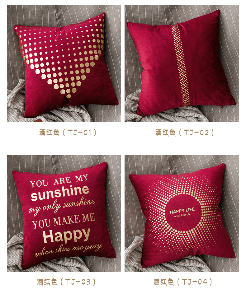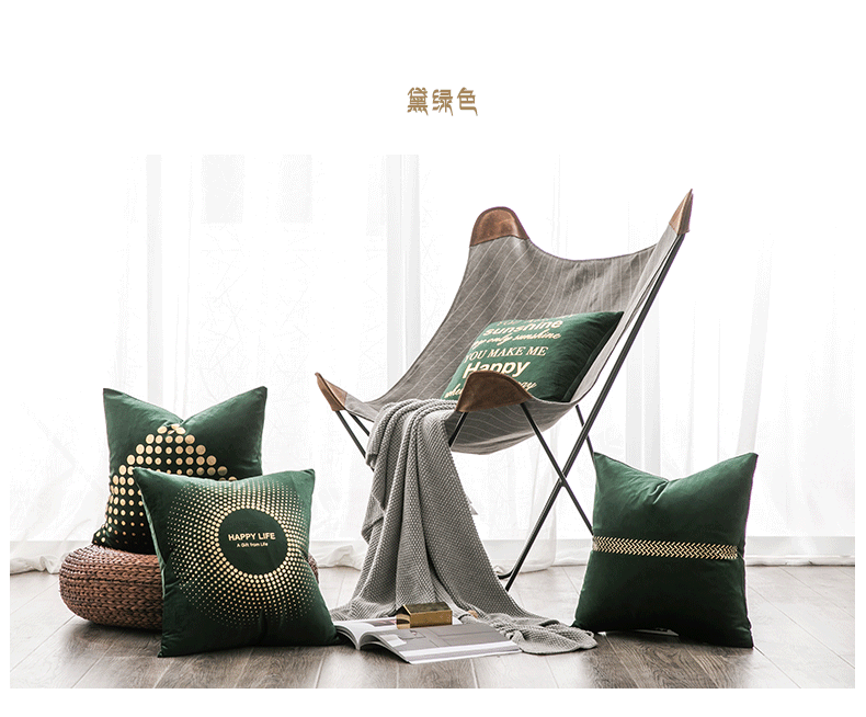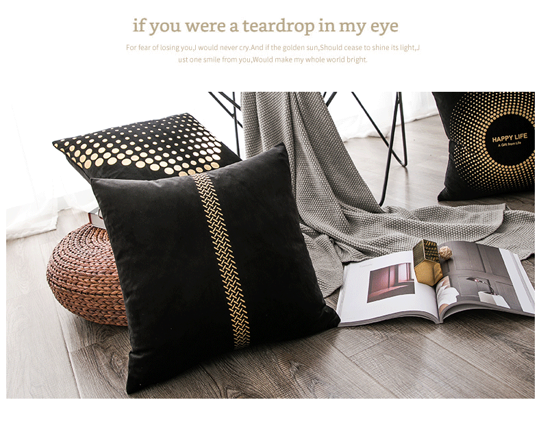 北欧烫金天鹅绒靠垫沙发抱枕女靠枕绒靠背垫抱枕套不含芯客厅家用