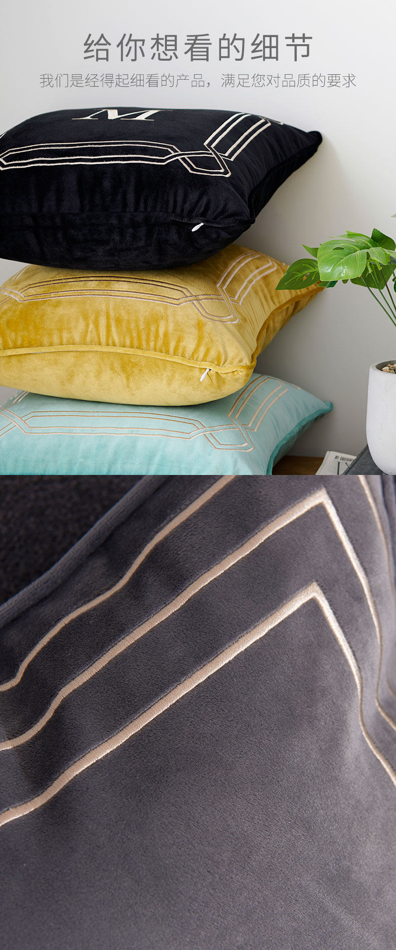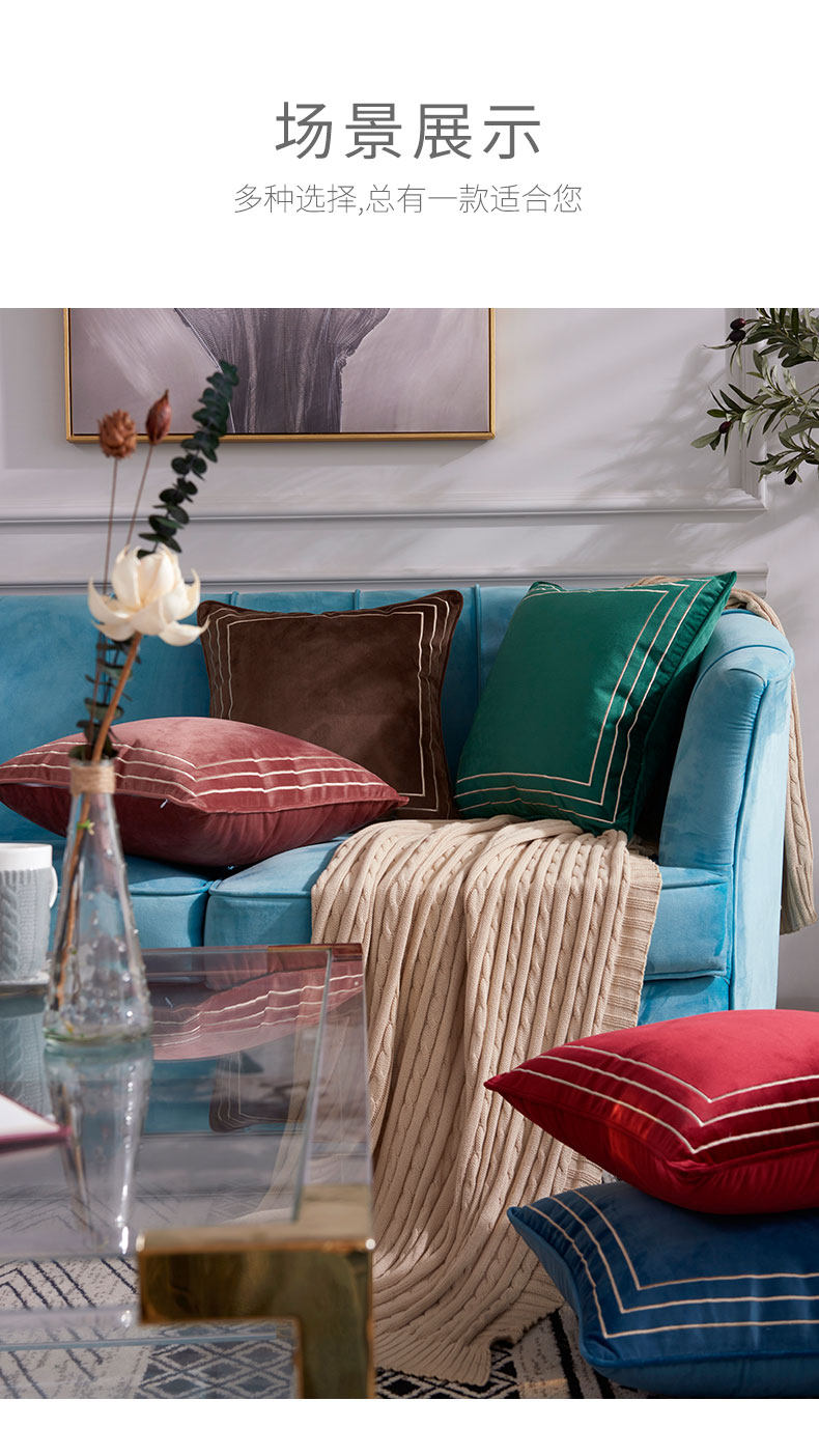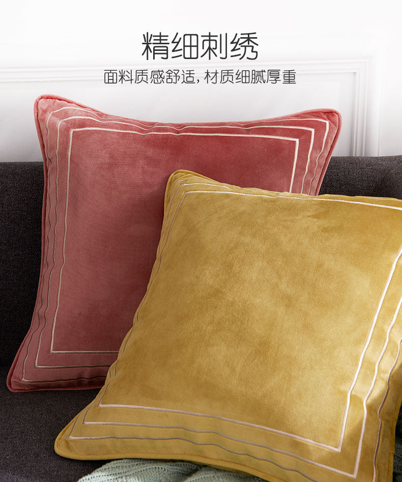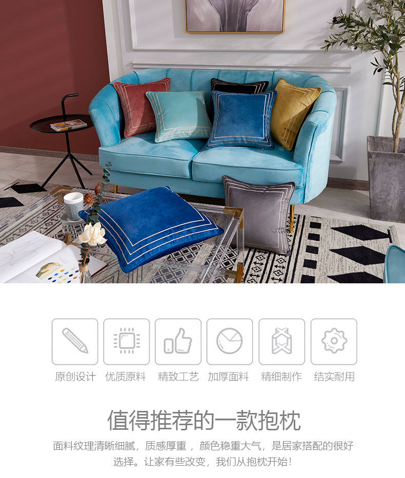 丝绒抱枕现代简约沙发靠垫轻奢黄色天鹅绒靠枕套不含芯蓝色正方形
