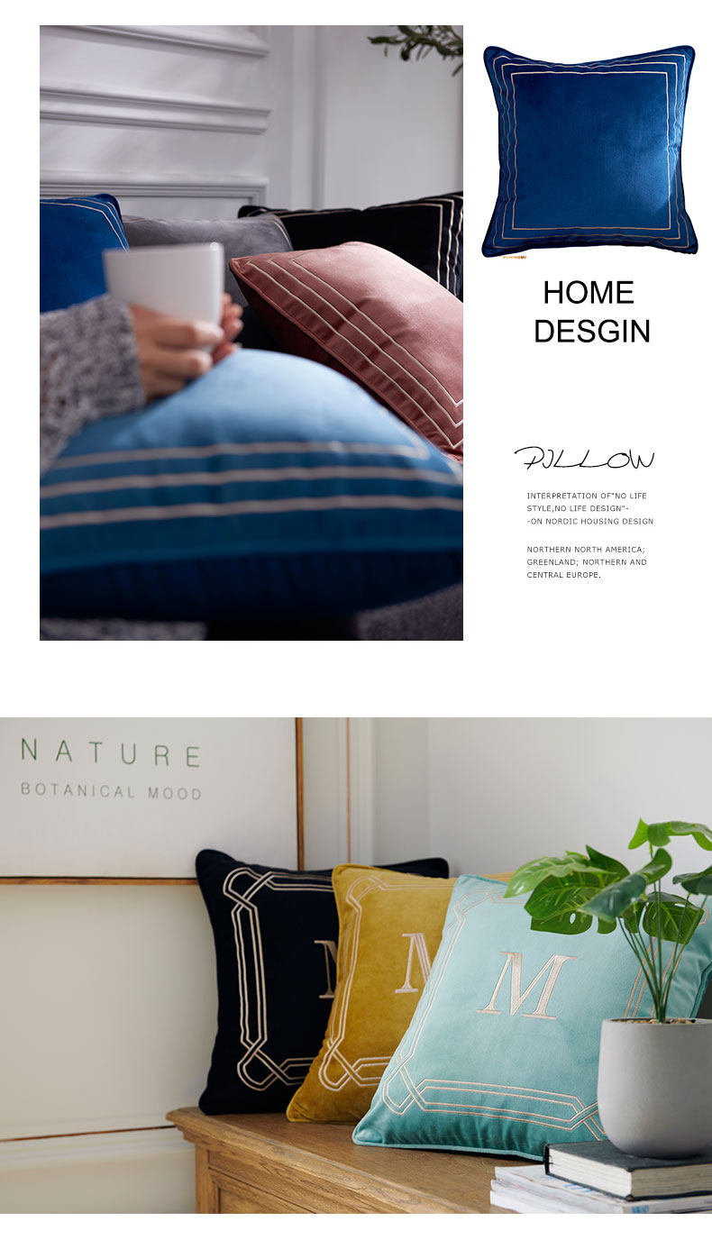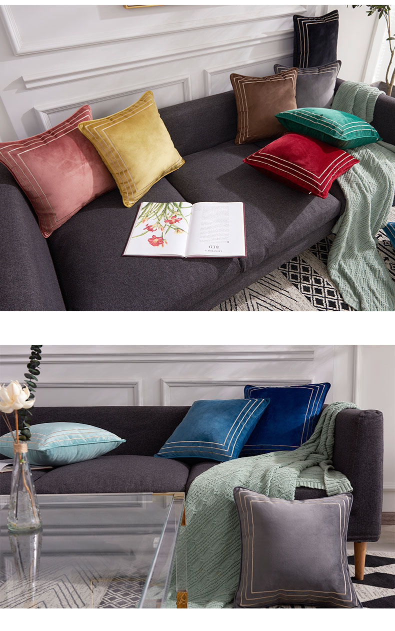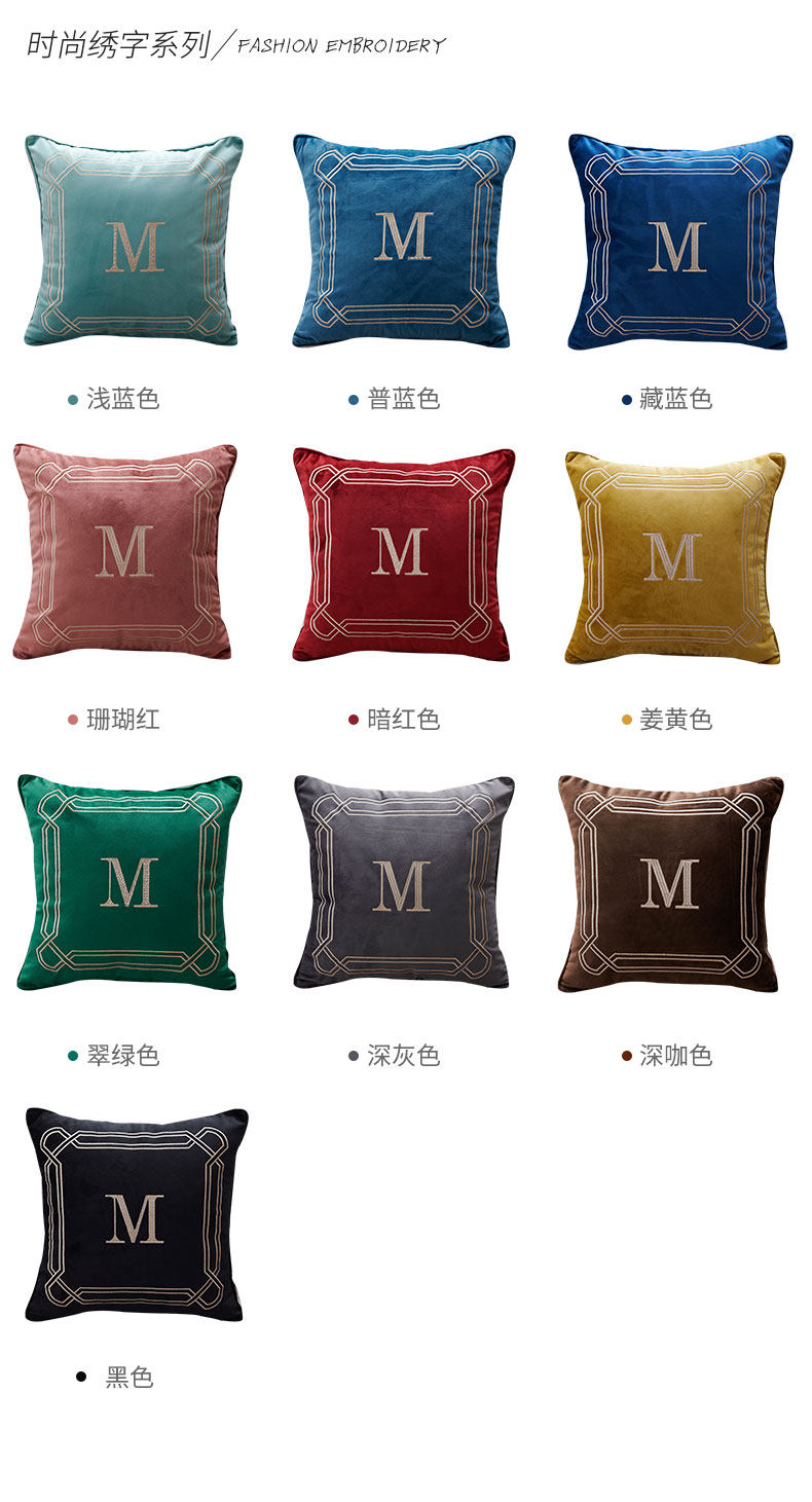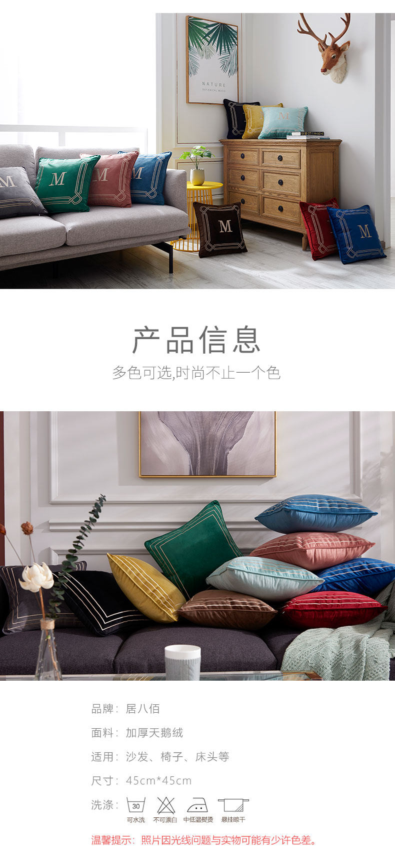 丝绒抱枕现代简约沙发靠垫轻奢黄色天鹅绒靠枕套不含芯蓝色正方形