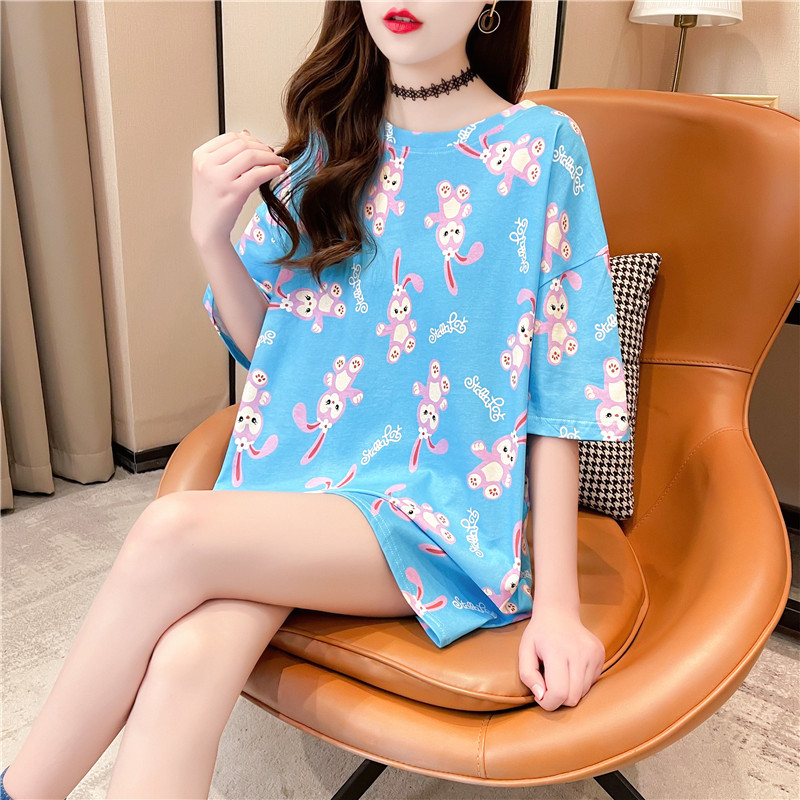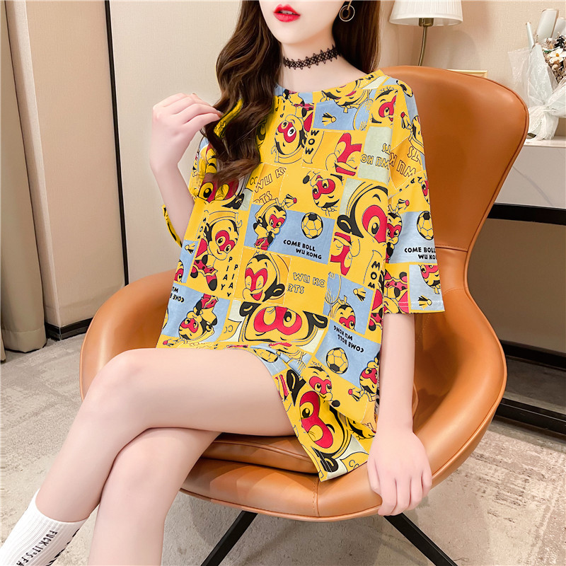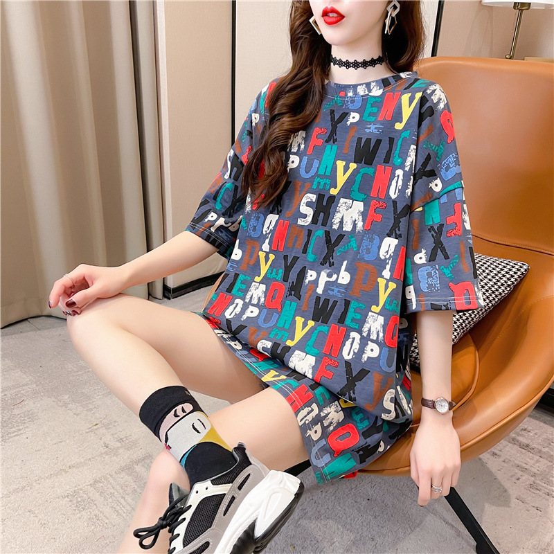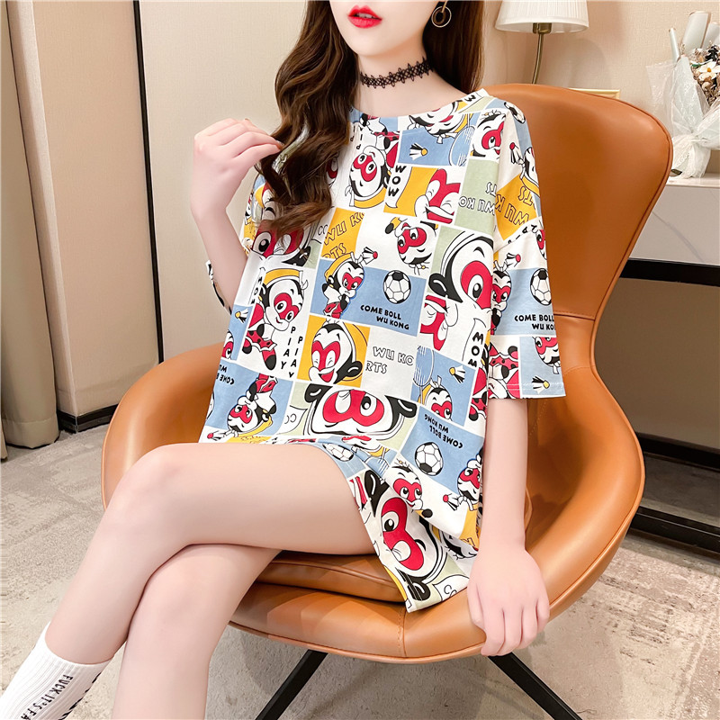 外贸女装批发夏季新款短袖t恤女宽松大码中长款女士体恤一件代发