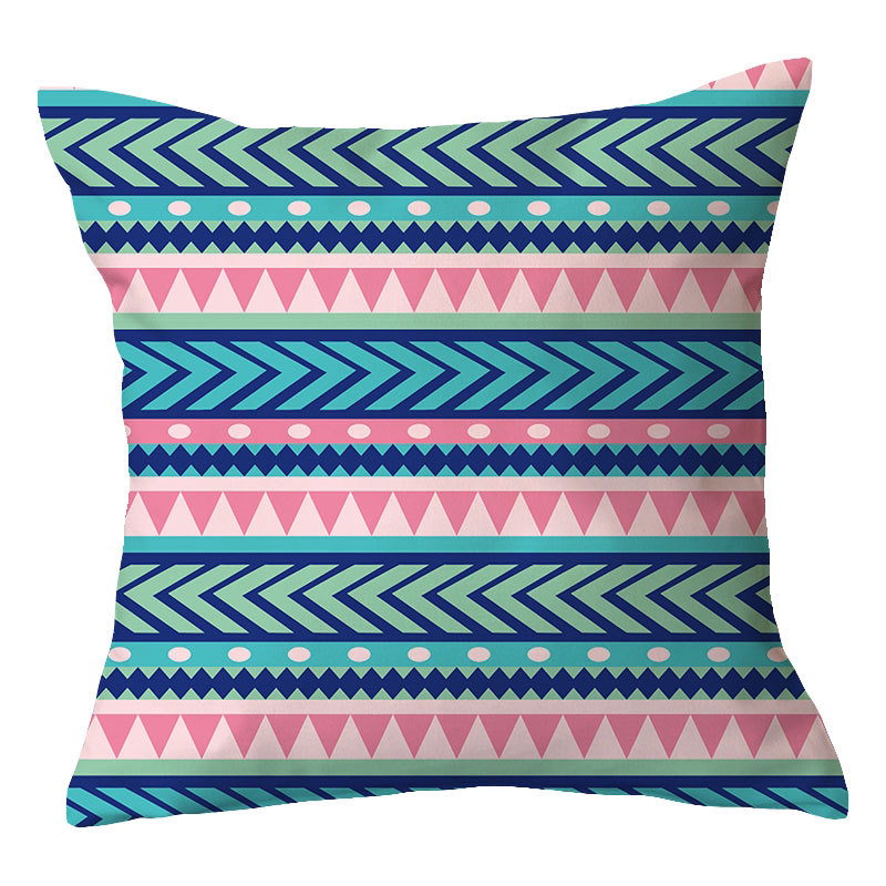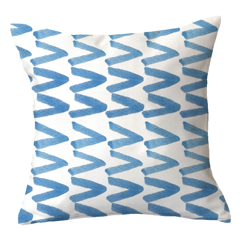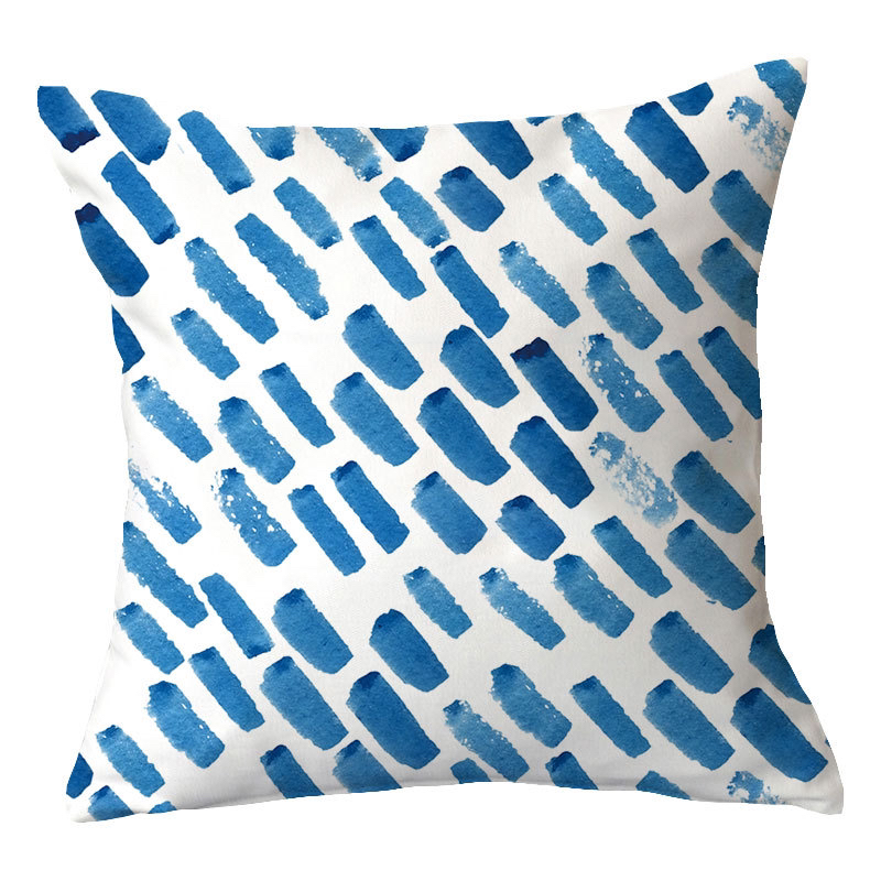 跨境 简约 新款蓝色几何毛绒抱枕套家居布艺沙发靠枕靠垫套定制