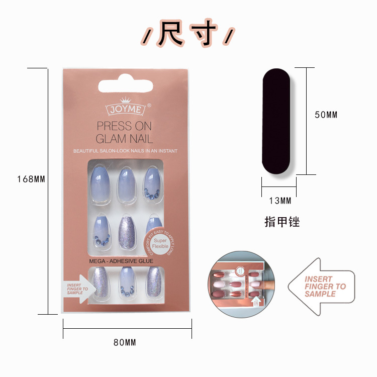 现货厂家直销短款芭蕾甲渐变蓝葱粉穿戴甲24片甲片成品假指甲盒装