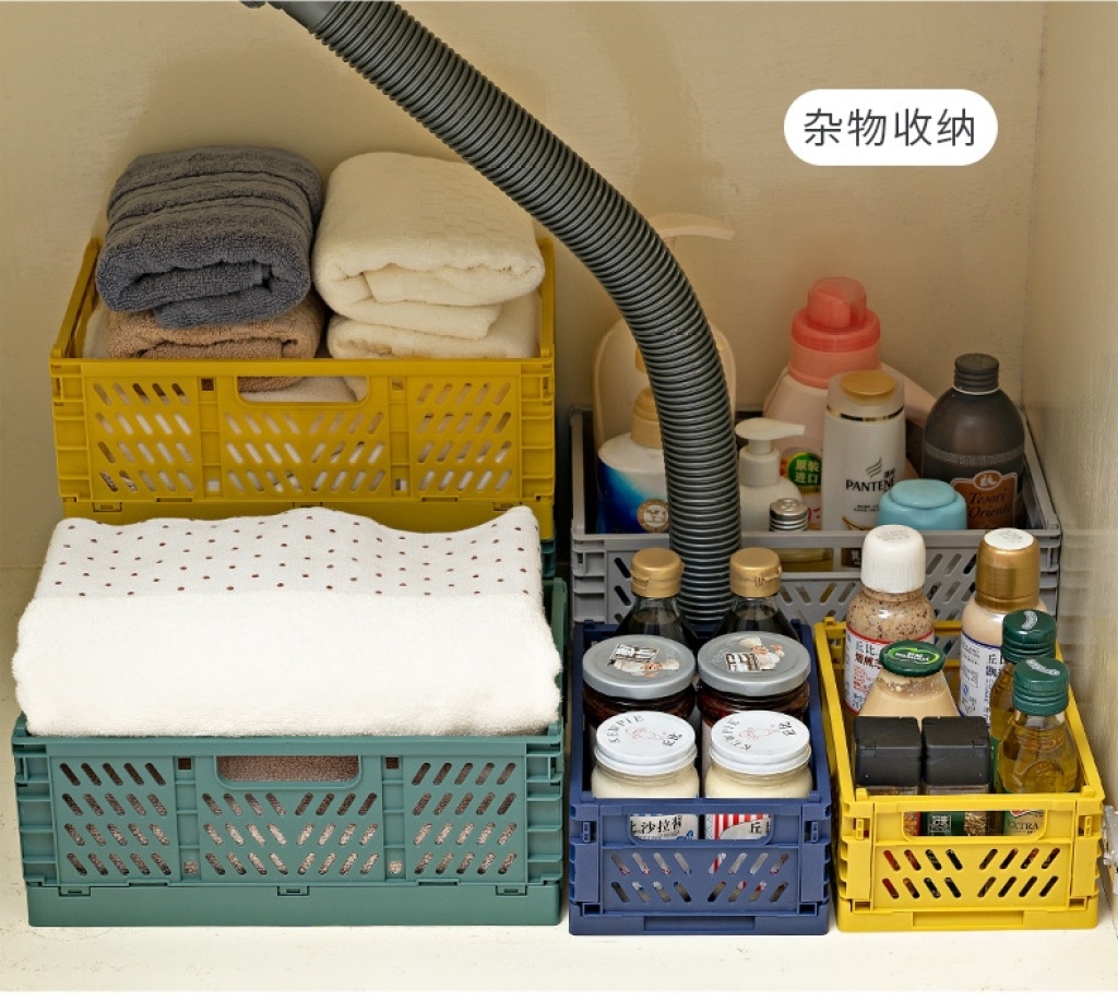 Y24-6118化妆品零食水果塑料可折叠收纳筐桌面迷你收纳篮杂物筐