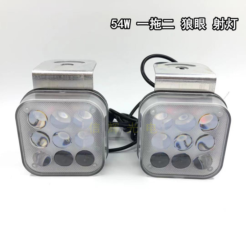 54W 狼眼射灯 一拖二 白光常亮 彩色爆闪