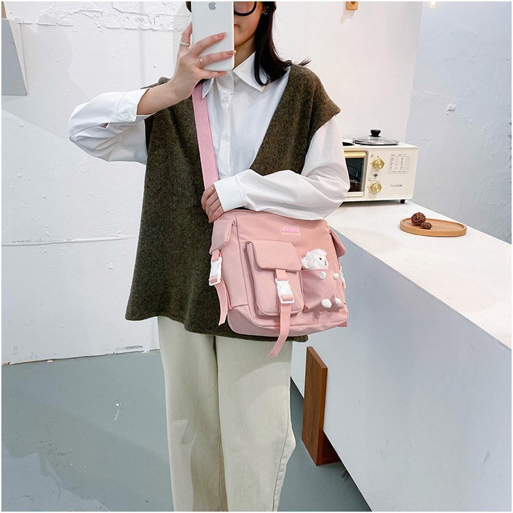 新款简约大容量尼龙布包森系百搭包大学生多色斜挎单肩包两用女包